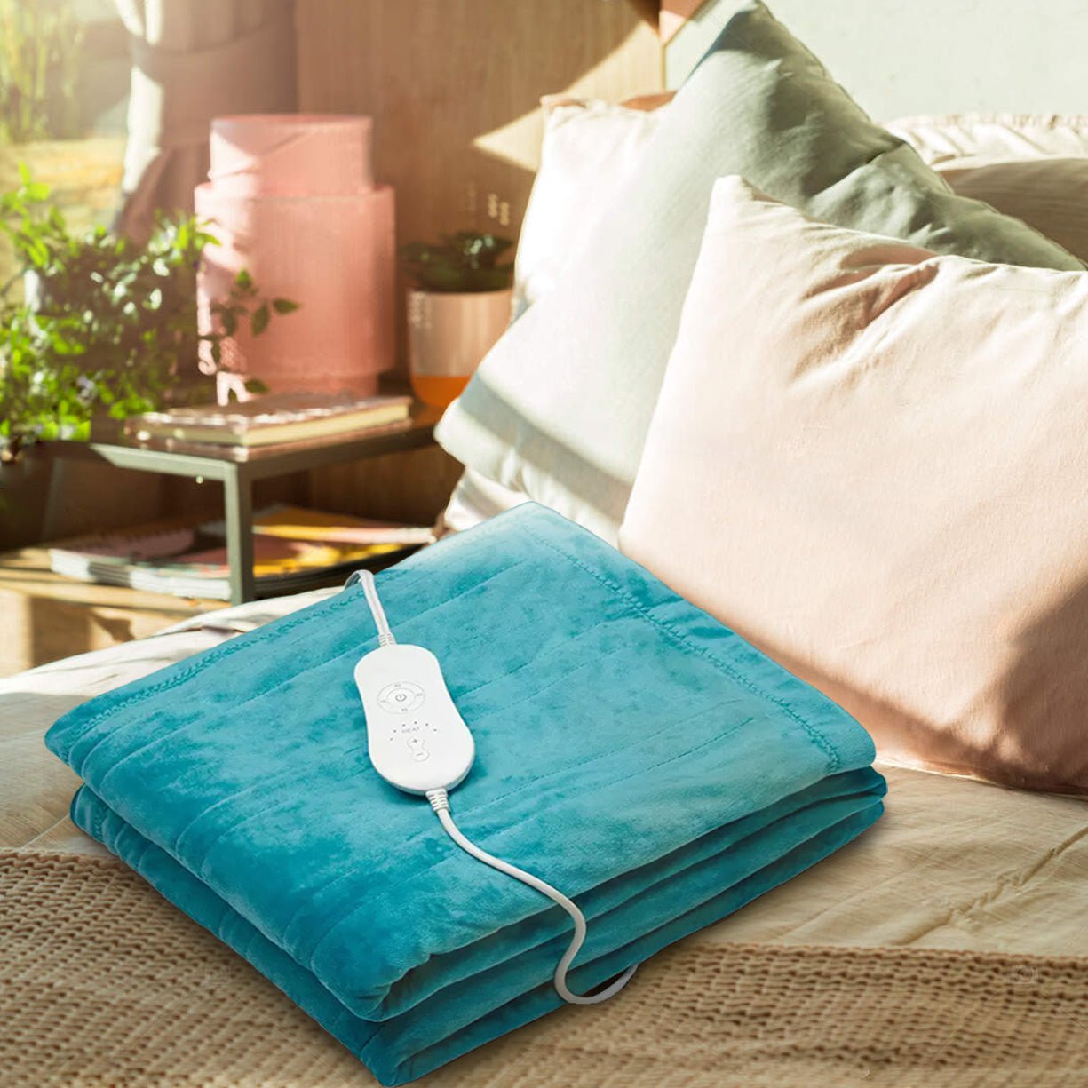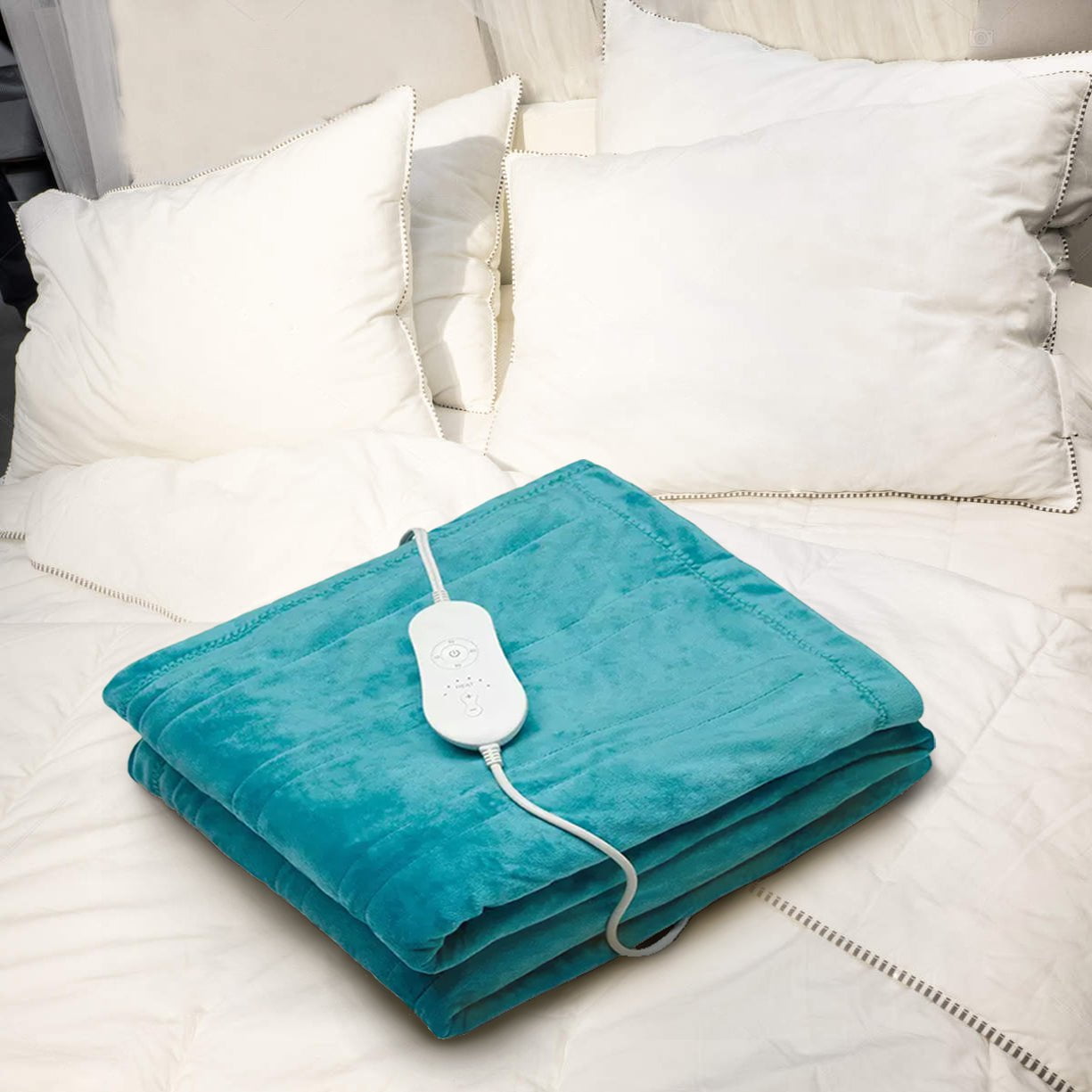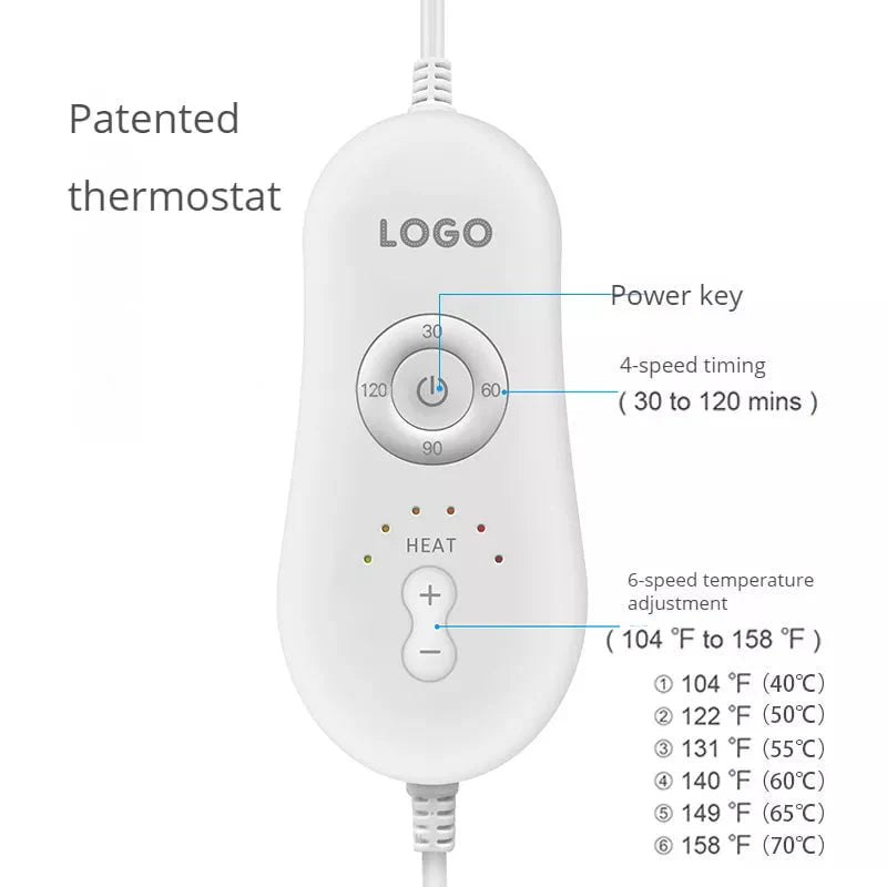 It boasts a fast-heating design for immediate warmth in cold weather, a convenient controller with various heating settings, an auto shut-off function for added comfort, an over-heat protection feature, a portable design and a long power cord for use anywhere. it is made of high-quality fabric that is soft and comfortable to the touch. It is also easy to maintain and clean as it is machine washable.