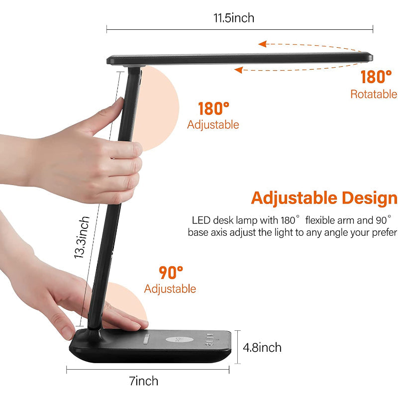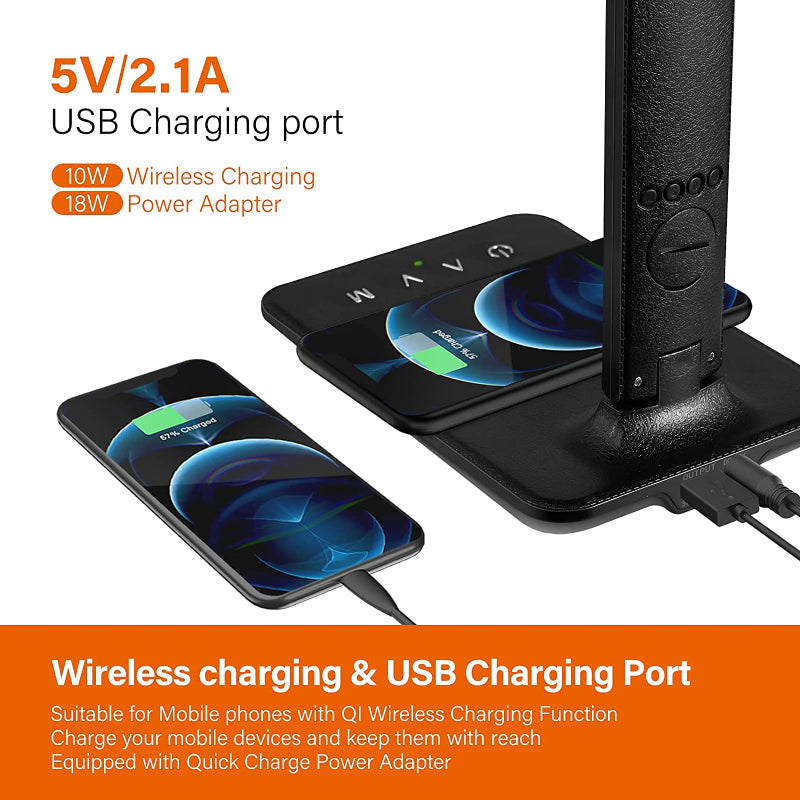 - POWERFUL CHARGING: Owning both a USB charging port and a fast wireless charger (needs a 5V/2A adapter, already Included) means you can charge two devices and use the desk lamp to work at the same time.
