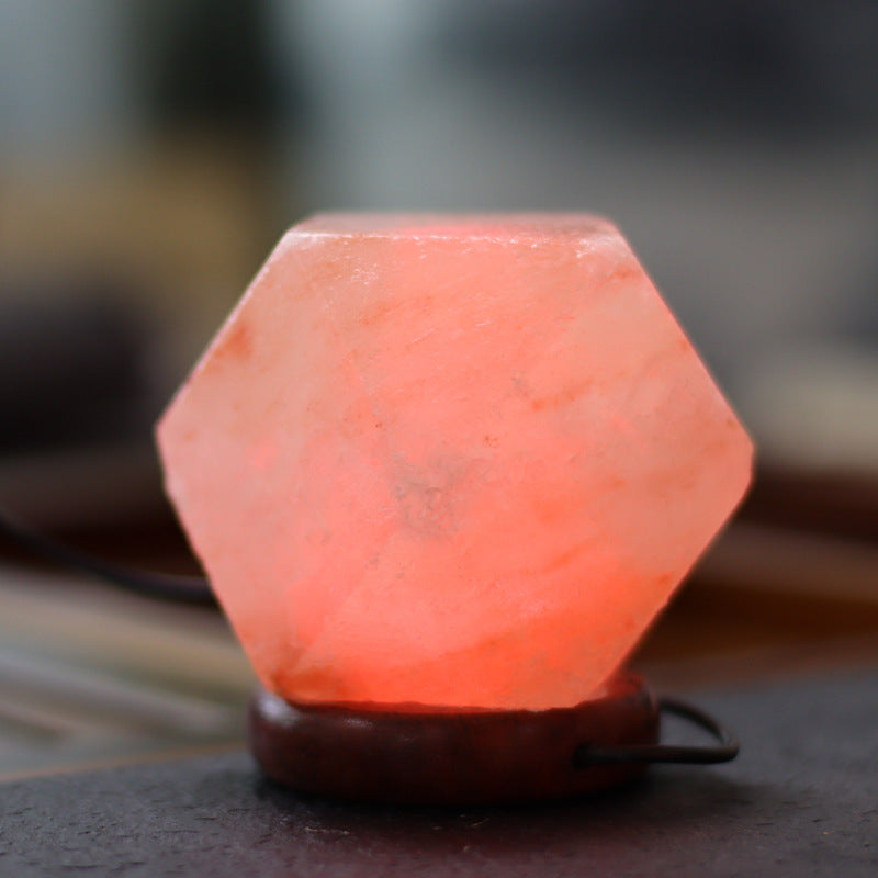 Diamond Shaped Himalayan Salt Lamp With Wooden Base