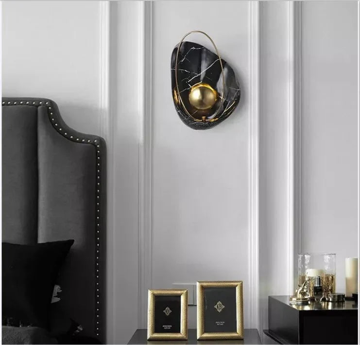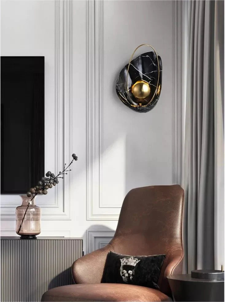 Introducing the Éclairage Marble Wall Light, a captivating blend of elegance and sophistication. This exquisite wall light is designed to showcase the timeless beauty of marble, complemented by the strength and durability of resin and iron materials. The Éclairage Marble Wall Light stands as a testament to refined craftsmanship and meticulous attention to detail. Available in two stunning color options, black marble and white marble, each variation exudes its own unique charm and character. The black marble option lends a sense of boldness and dramatic flair to your space, while the white marble option offers a classic and timeless aesthetic.