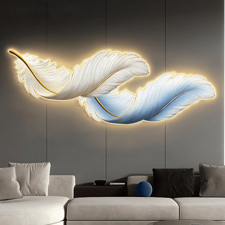 Introducing the Feather Float Light, a delicate masterpiece that dances with light. Crafted with precision, this ethereal light fixture features cascading a feather imagery that createa a sense of weightlessness and elegance. Its design transcends the ordinary, bringing a touch of sophistication to any space. Illuminate your surroundings with the Feather Float Light, where artistry and illumination unite to create a captivating ambiance.