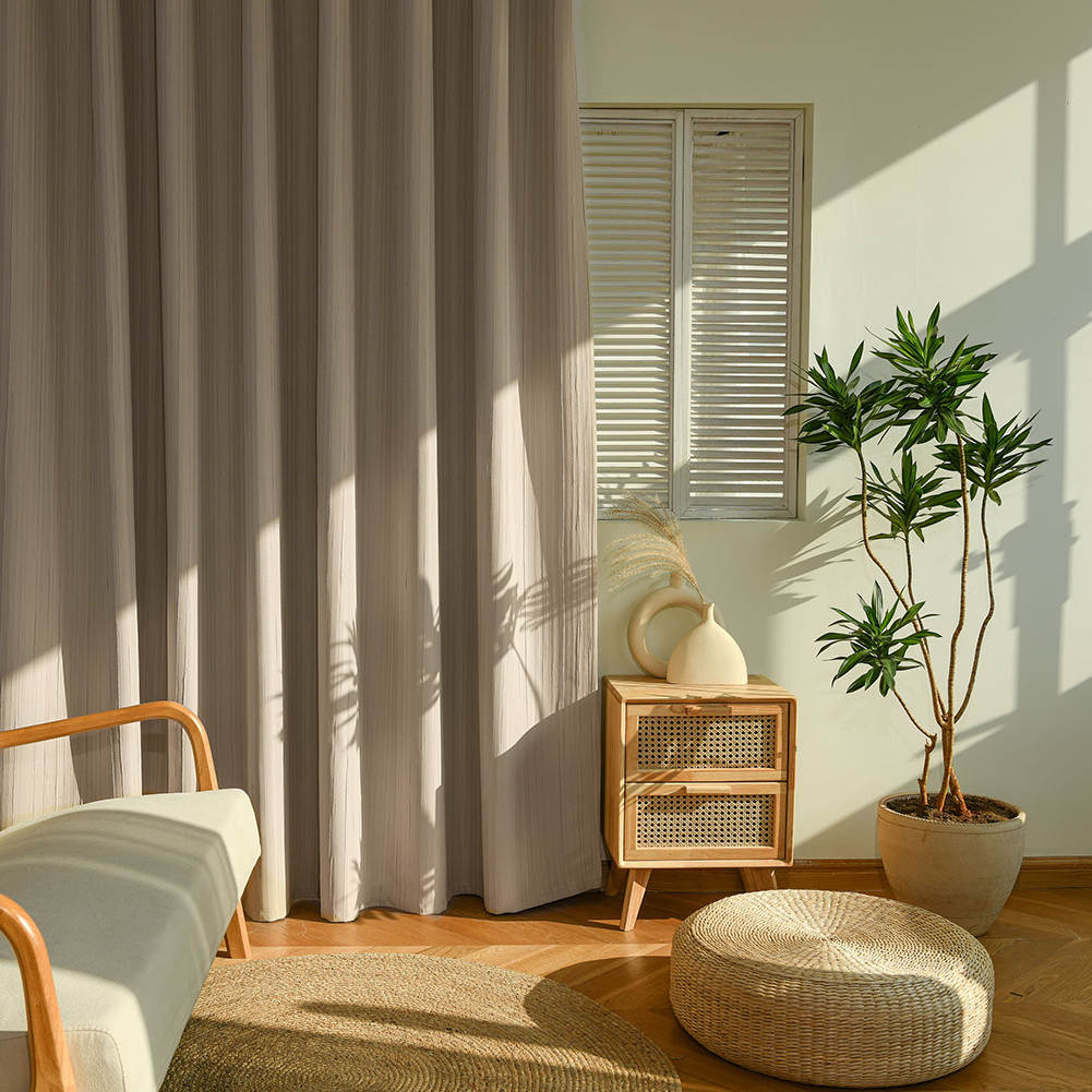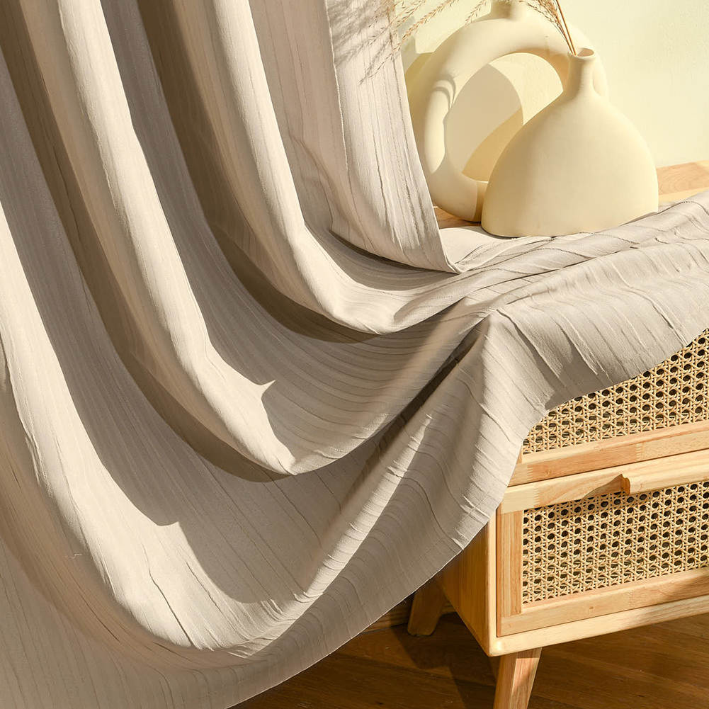 This textured curtain is made from polyester fabric, with a lightweight design that blocks out unwanted light, and provides insulation. For the best folded effect, make sure you order enough curtain to cover twice the length of your window.