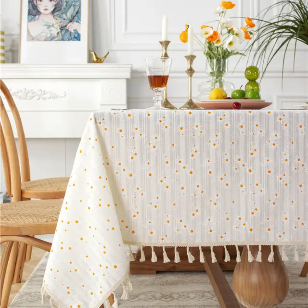 Our Floral Table Cloth features a captivating design inspired by blooming flowers and lush botanicals. The intricate floral patterns are on high-quality fabric, capturing the vibrant colors and delicate details of nature's wonders. Whether you choose a bold and vibrant arrangement or a subtle and elegant design, the table cloth will add a charming focal point to any table setting.