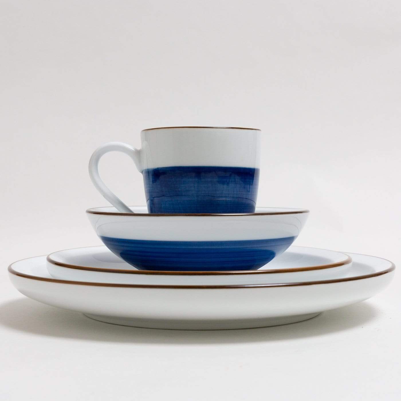 Blue Streak — Looking to refresh your dinnerware? Swap out tired plates with the Flur Dinnerware Set. Dress up your table with exciting blues colour strokes and a copper-coloured rimmed dinnerware set that shows off your artistic side and adds a tranquil feel to everyday dining. The mix of modern and classic elements allows these pieces to pair well with any décor and look great in your cupboard, open shelves, or on your dining room table.