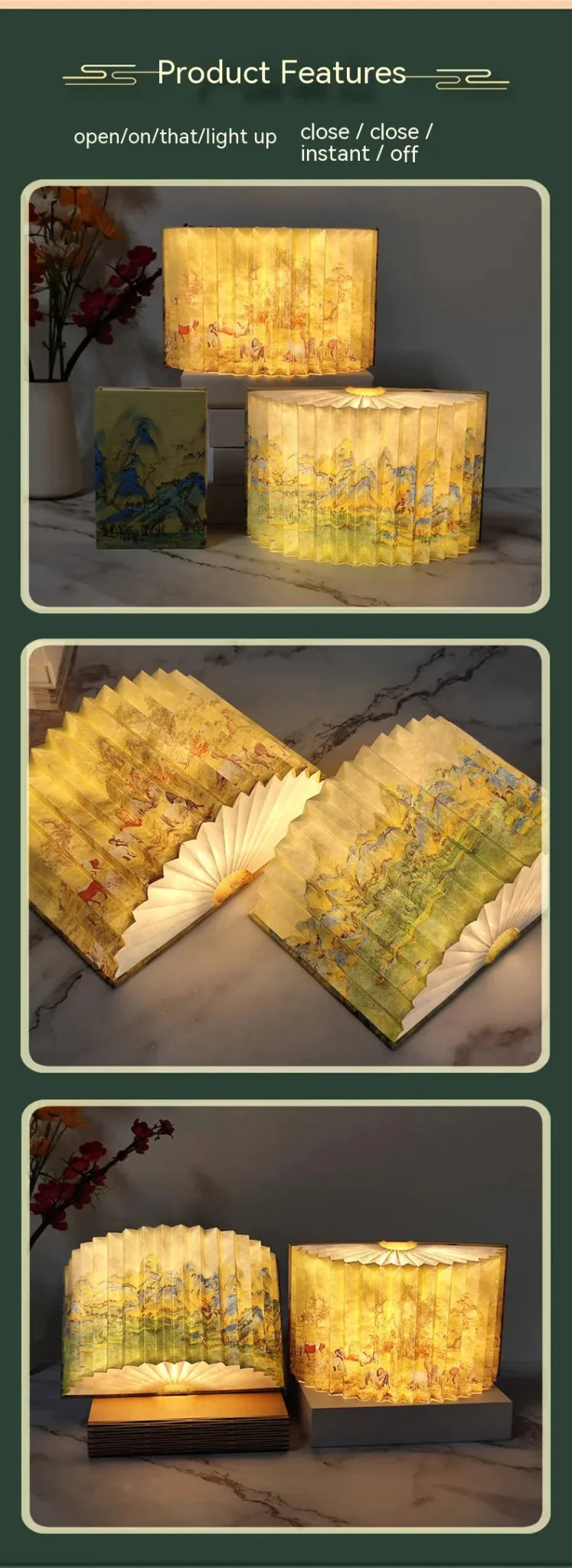 📚 Creative Glowing Books: Experience enchanting unfolding books revealing exquisite Chinese-inspired patterns, adding an interactive element to your decor.