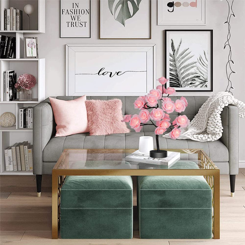 We combine a Bonsai-style design with gentle lighting and aesthetic roses to spread a gentle glow and brighten up the look of your room. Our rose flower lamp is vibrant, colorful, and stunning making it the perfect addition to any table, bookshelf, nightstand, etc. A wonderful gift for Thanksgiving, Christmas, Valentine's Day, Birthdays, Graduations, Weddings, and Anniversaries. Bring the beauty of the garden to your home! Simple and elegant this rose tree table lamp features a trunk and branches with 3D lifelike delicately crafted pink roses, adding a romantic and sophisticated touch to your indoor décor.