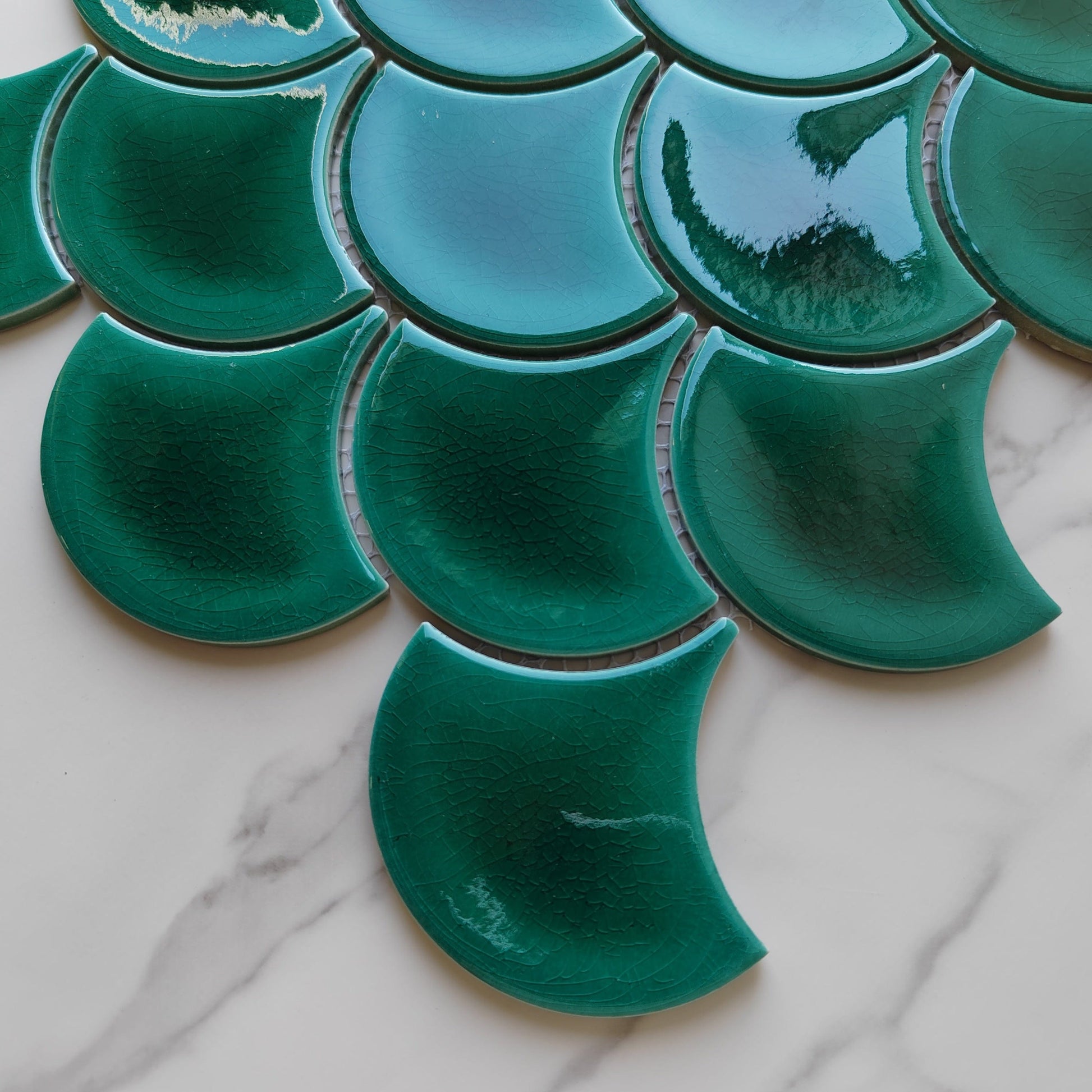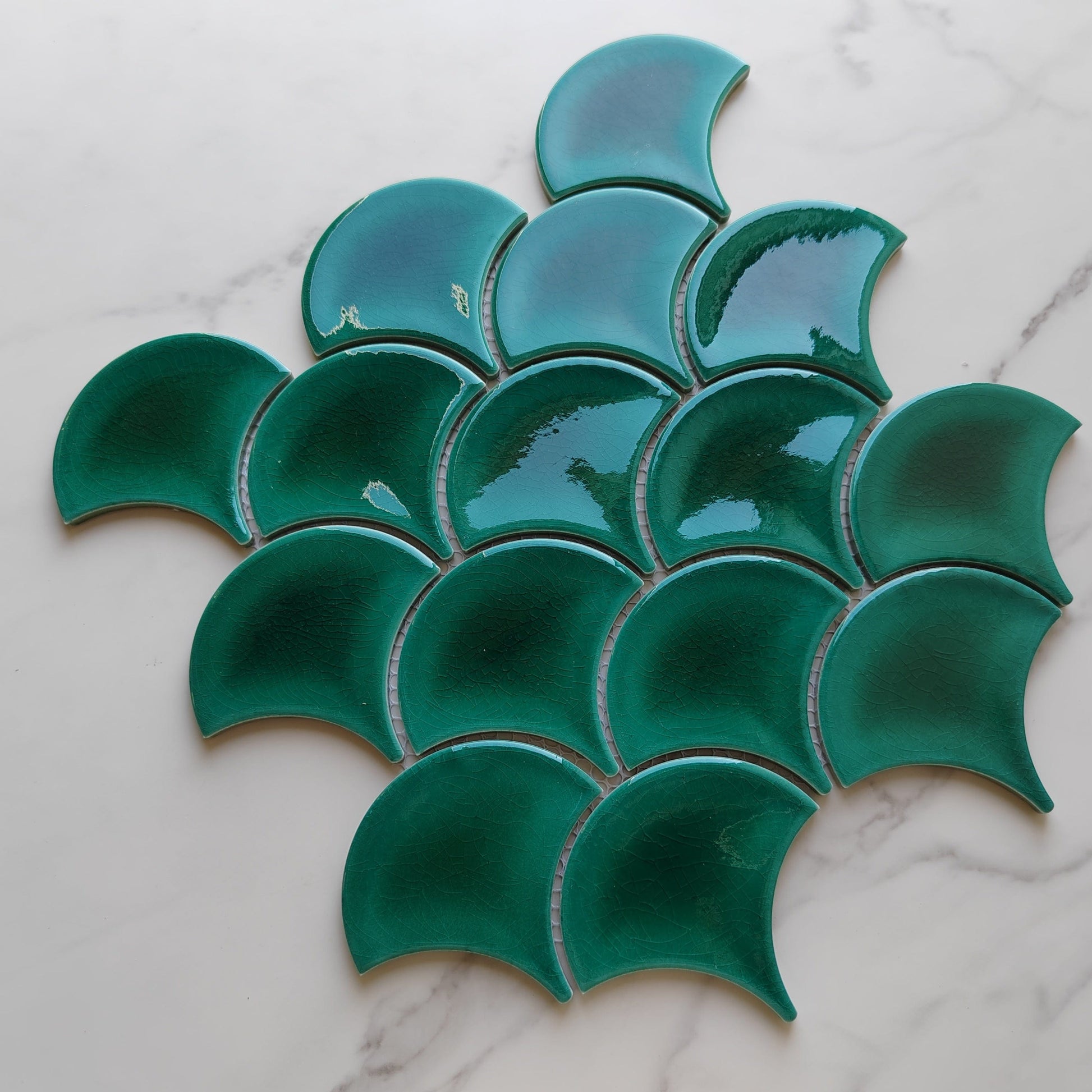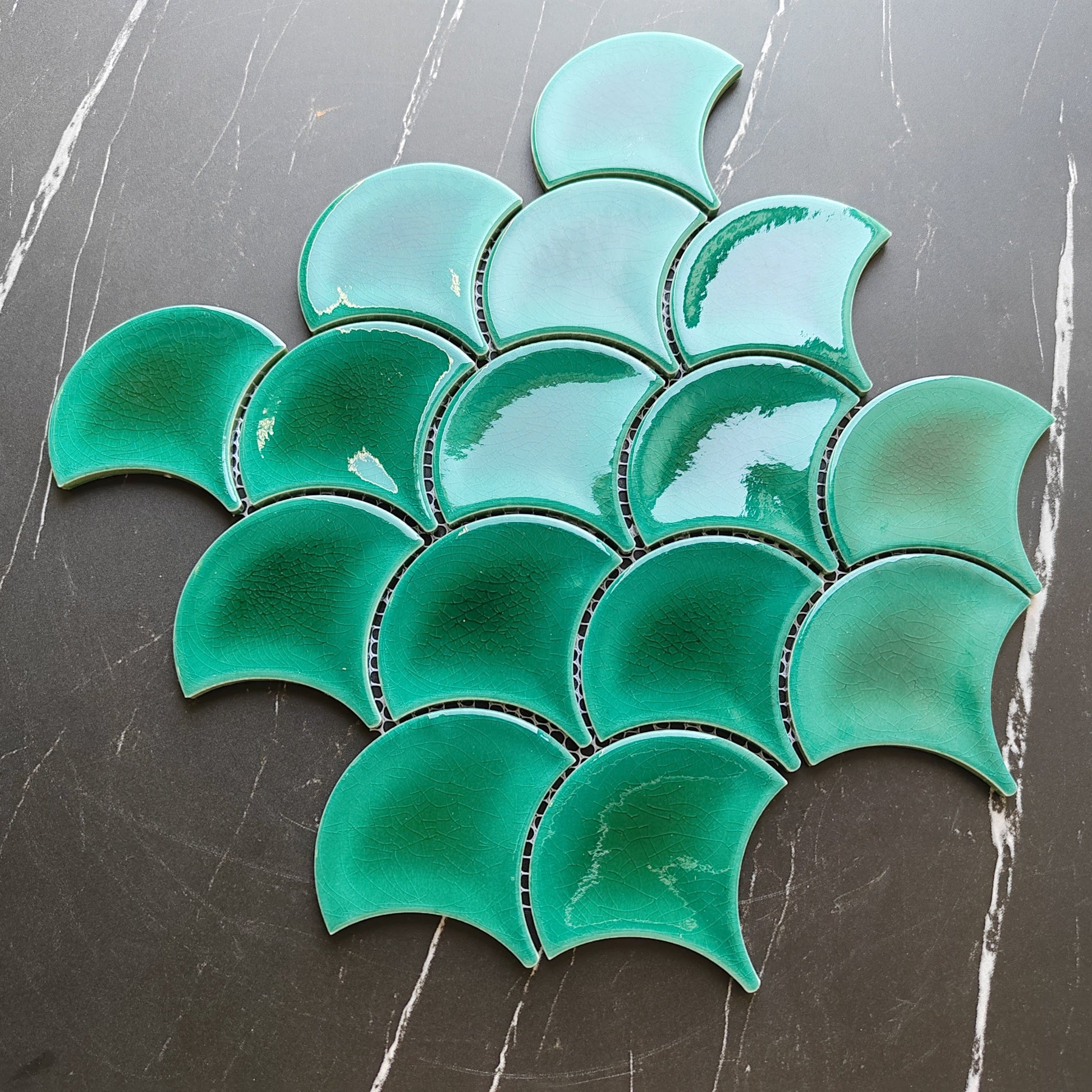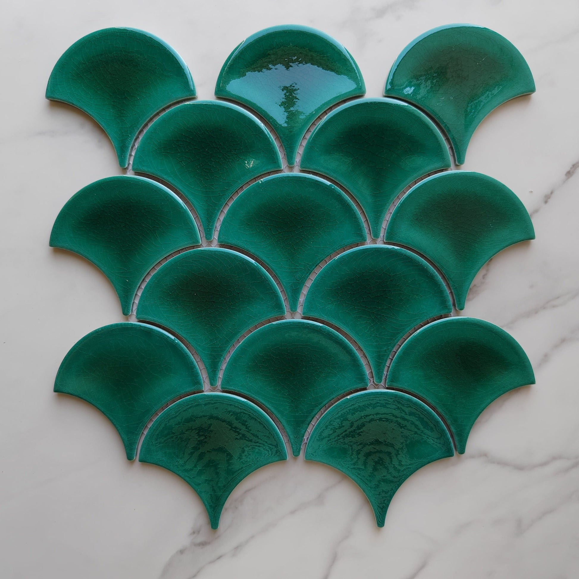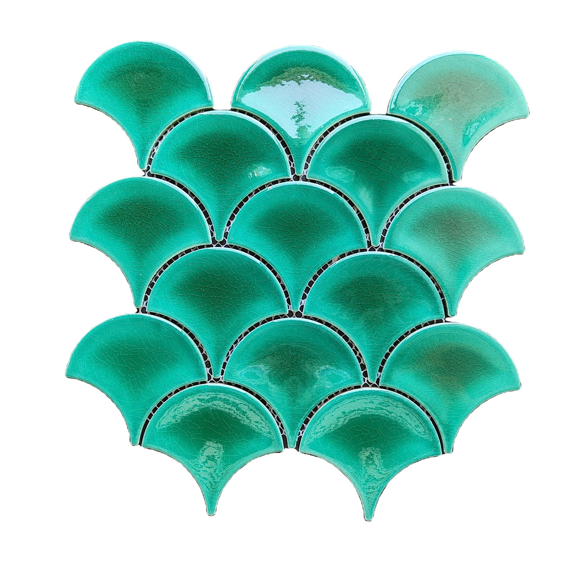 Elevate your space with our Glazed Light Green Fan Shaped Mosaic Tile! 💚 Crafted to perfection, these tiles add a touch of elegance and charm to any room. Their unique fan-shaped design and light green glaze bring a refreshing and inviting atmosphere to kitchens, bathrooms, and beyond. Ideal for both modern and traditional interiors, these tiles effortlessly blend style and sophistication, making them a perfect choice for your next renovation project.