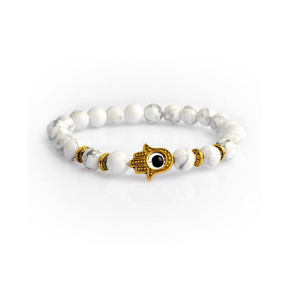 GOLD PLATED HAMSA'S HAND HOWLITE BEAD BRACELET