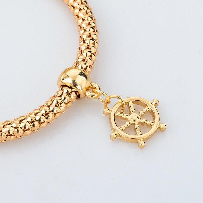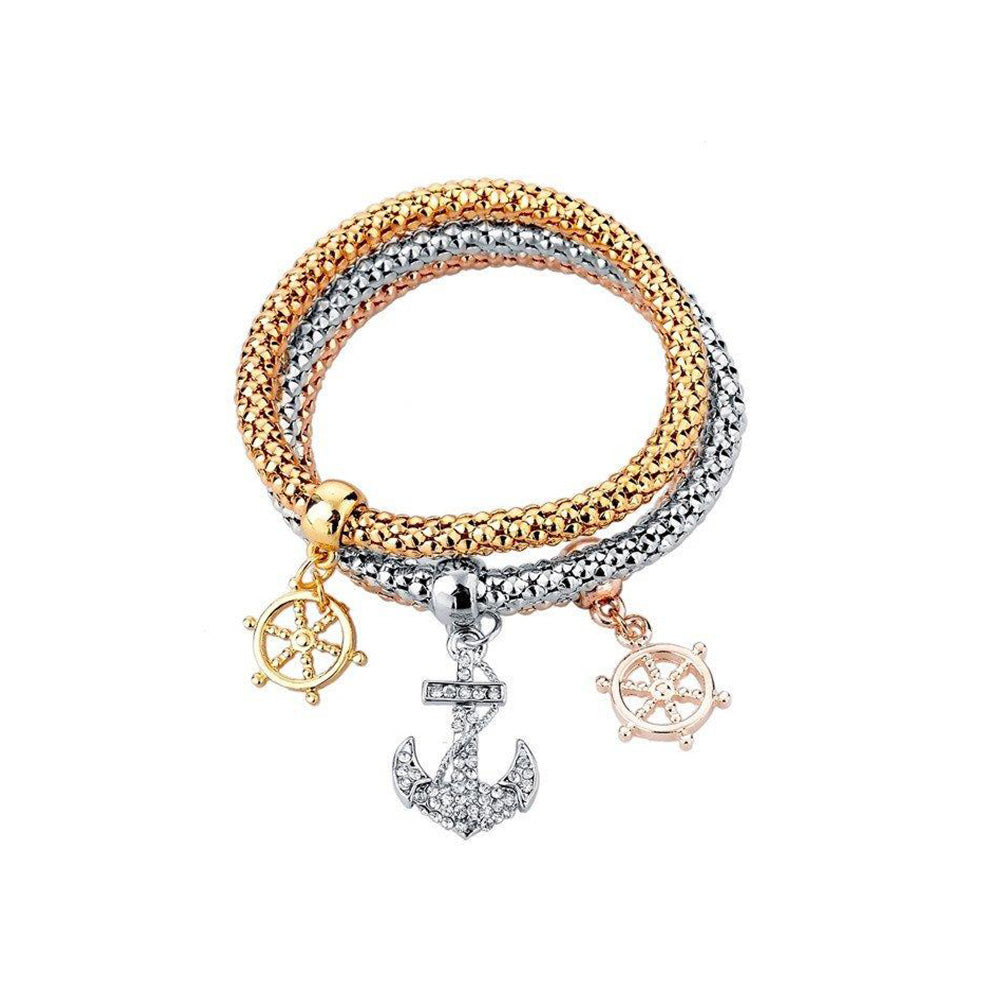 GOLD PLATED WHEEL OF DHARMA & ANCHOR BRACELETS BUNDLE. 3 PIECES