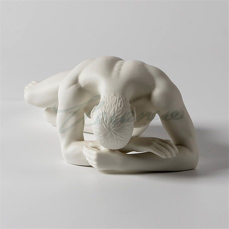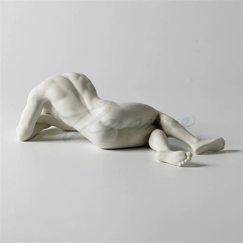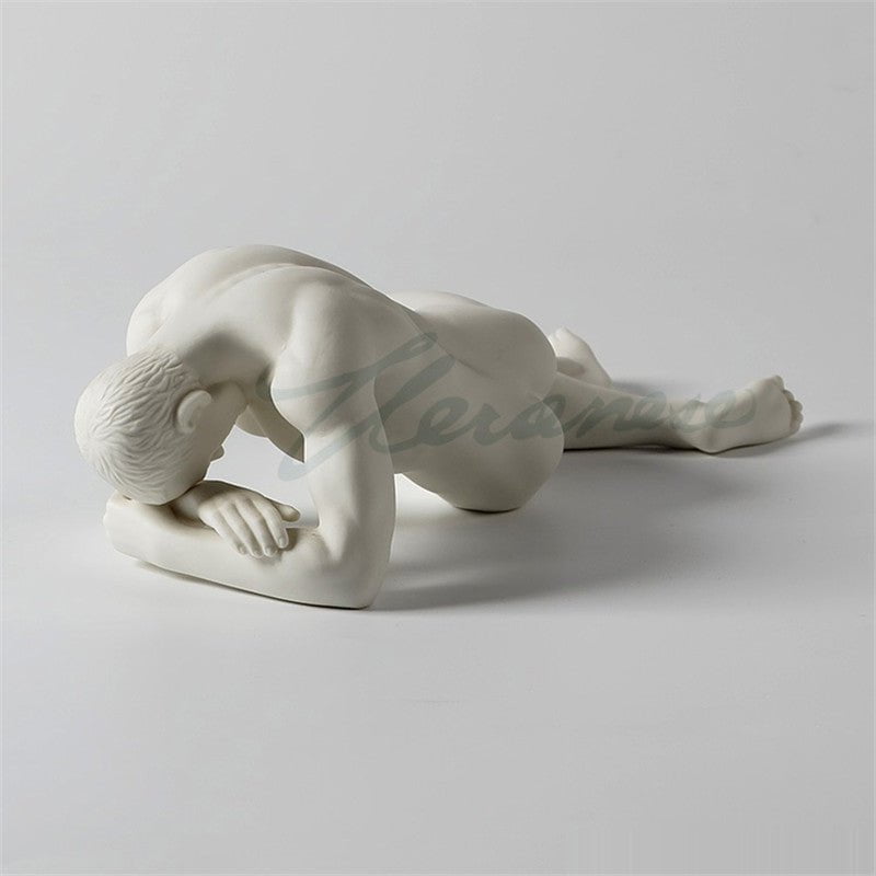 The Hide Me Not Sculpture is a captivating piece of art that embodies a complex array of emotions and invites contemplation. Crafted with delicate precision using high-quality ceramic, this sculpture showcases a thought-provoking design, depicting a man laying downwards while covering his face. The Hide Me Not Sculpture is a profound representation of vulnerability and introspection. The intricately sculpted figure, with its meticulously defined contours and expressive details, invites viewers to delve into the depths of human emotions. The positioning of the man, with his face concealed, creates a sense of mystery, inviting interpretation and personal reflection.