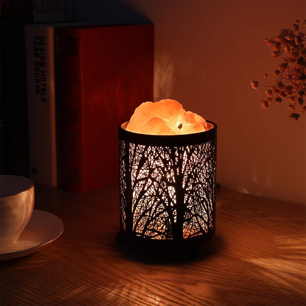 - UNIQUE FOREST DESIGN BASKET HIMALAYAN SALT LAMP: When you are ready to go to bed, turn on the salt lamp and it will glow like a flame. You will see a forest shadow on the wall, just like breathing in nature. Premium quality of this forest basket we made it by anti-rust material, long service time.