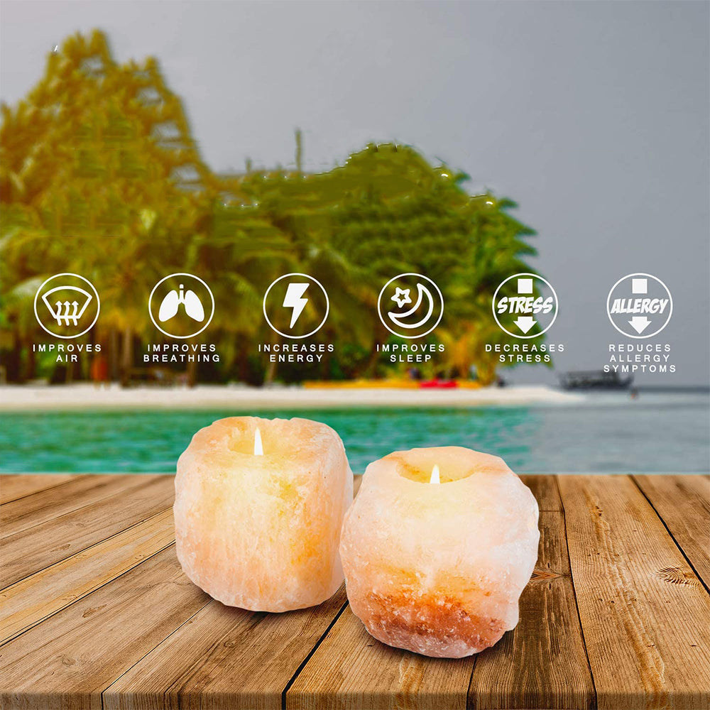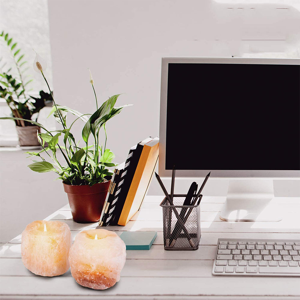Create a serene, relaxing ambiance at your home or office with Tea Light Candles Holders. The lamp has a built-in LED light and is made out of pure and genuine crystal salts from the Himalayan mountains. It also releases negative ions into the air to create an ionizing effect to purify the air.