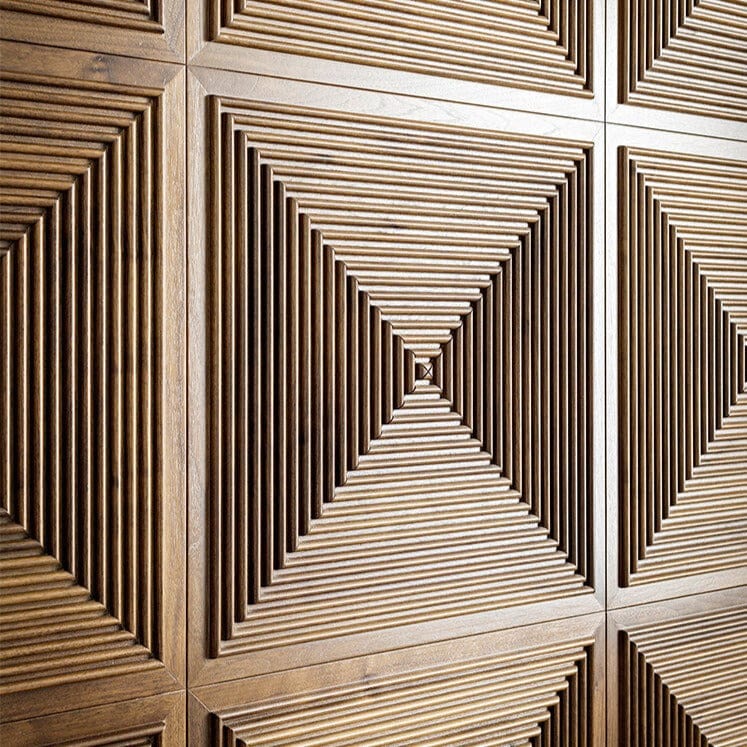 Modern meets Victorian. Made from solid olive wood, this beautiful new design is a showstopper. One small panel covers 1.7 square feet, while a large panel covers 3.9 square feet.