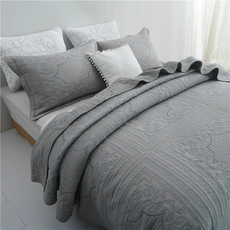 Dress your bedroom in the sophisticated Larena Multi-Style Coverlet Set. This set gives a modern update to the classic toile pattern. It's cozy, lived-in look and feel, the beautiful bedding that brings an effortless touch of understated luxury to your bedroom's décor.