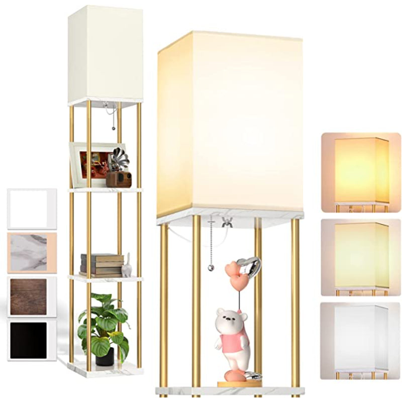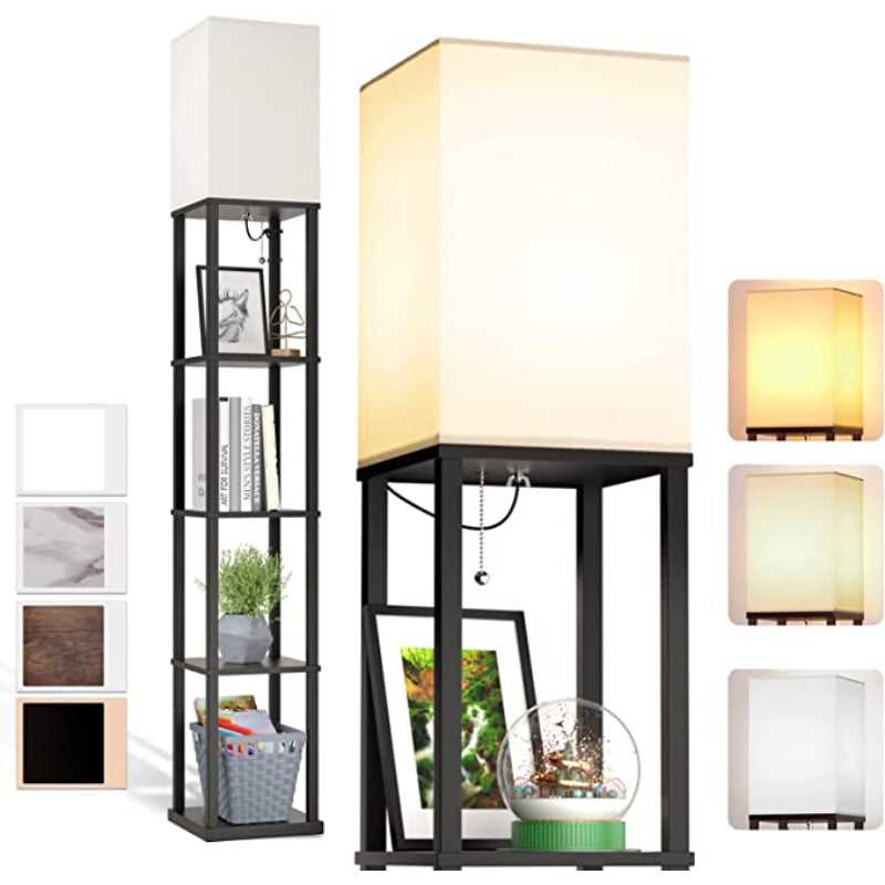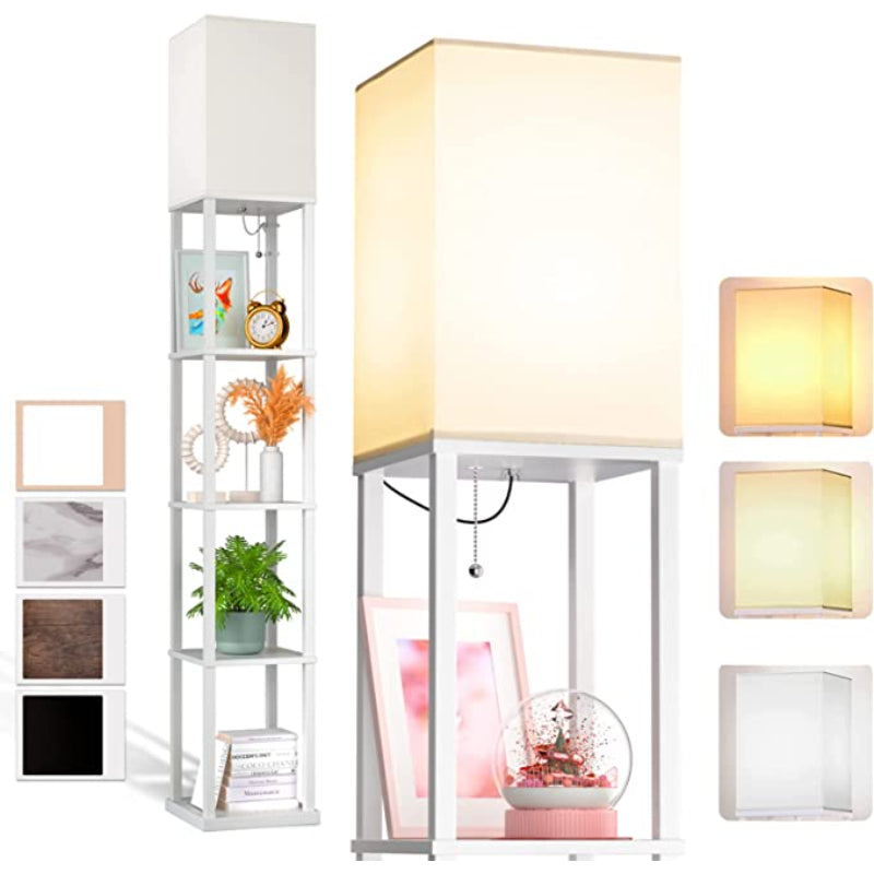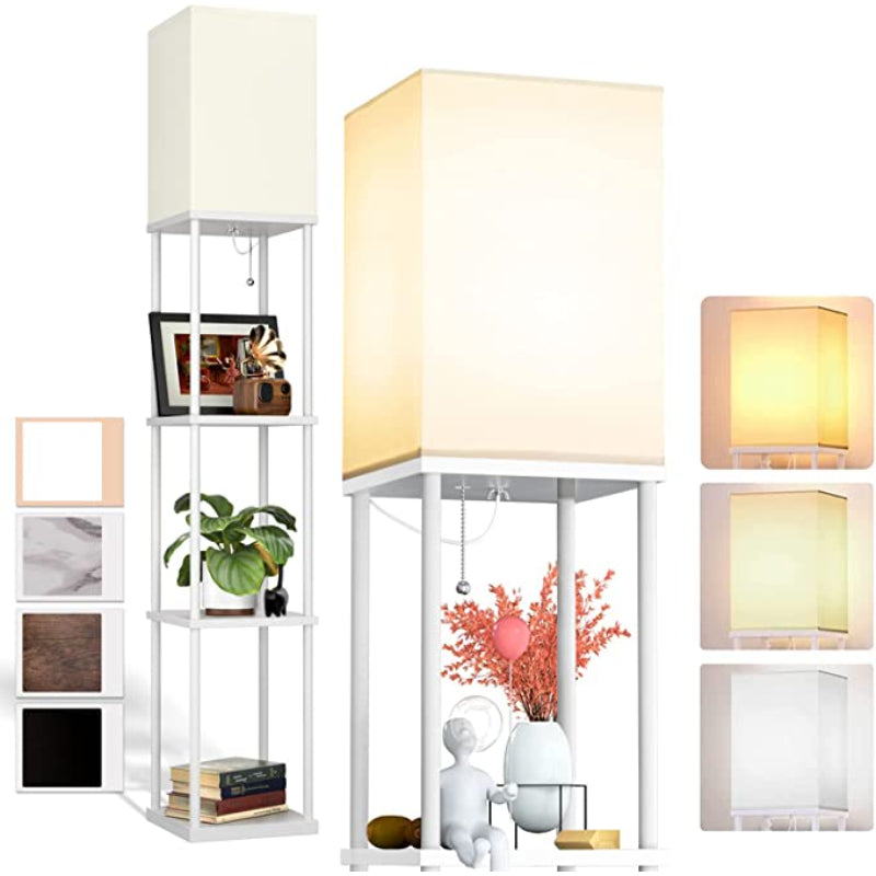 LED Modern Shelf Floor Lamp With 3CCT LED Bulb And White Lamp Shade - Display Floor Lamps With Shelves For Living Room, Bedroom And Office