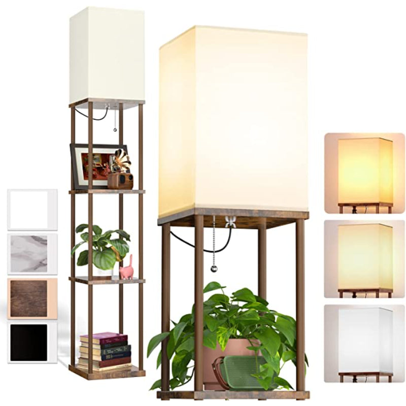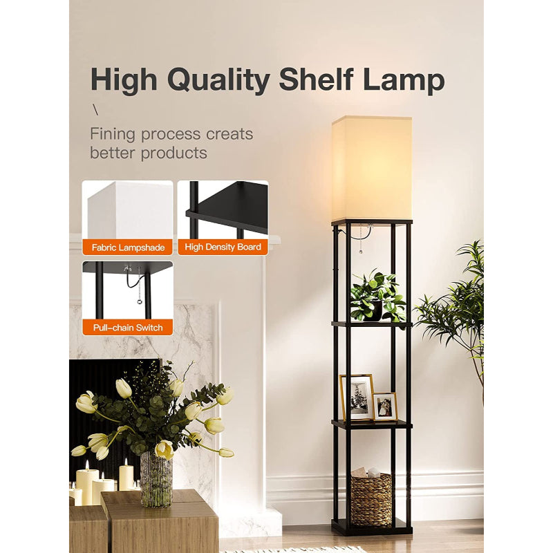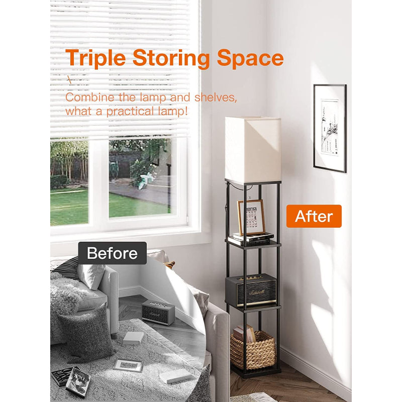 - Triple Storage Space: Shelf floor lamp with 4 tiers, each board uses high-density fiber material, which loads 50 pounds max. You can put photo frames, plants, books, or any items on it. Also, the lamps self is heavy enough to avoid falling down.