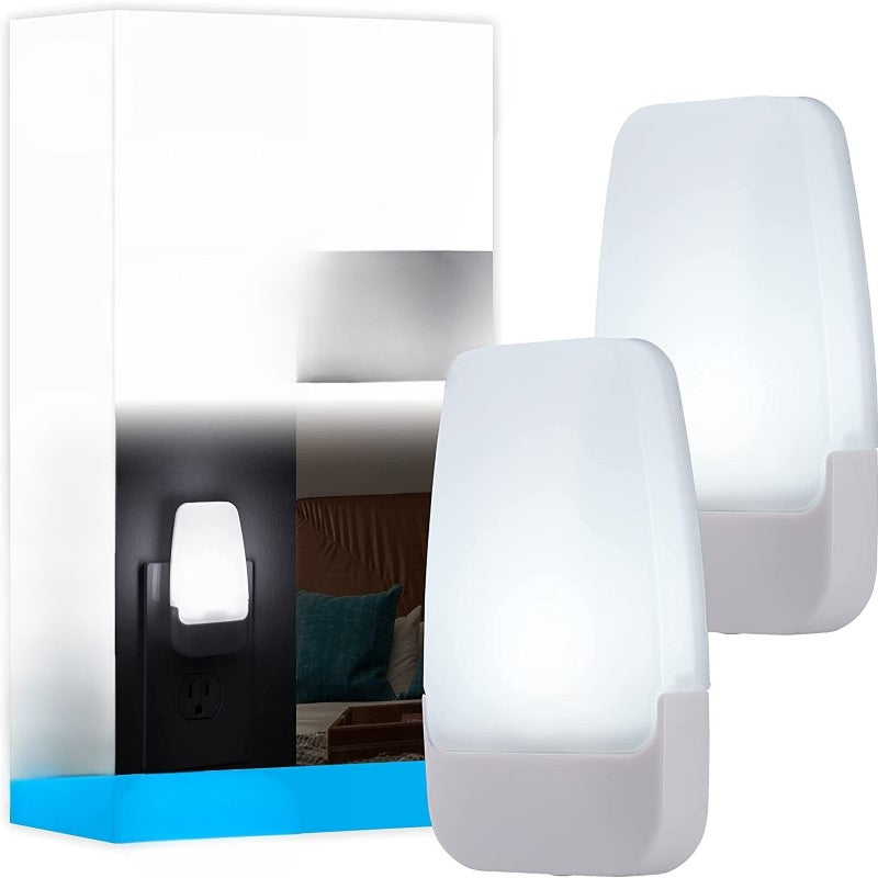 - Compact Night Light: The modern night light design plugs into any standard unused indoor outlet while leaving the 2nd outlet free for use