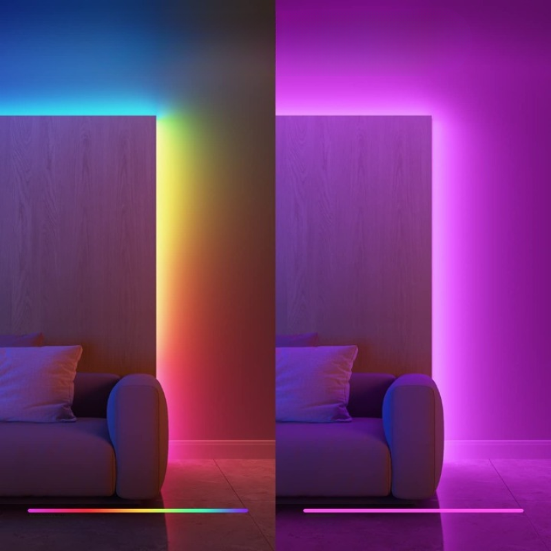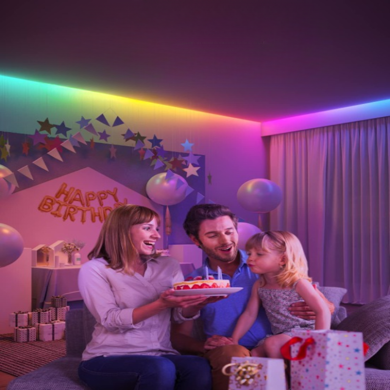 - LED lights for bedroom display multiple colors on one line at a time compared with traditional RGB lights. A colorful combination of smart LED lights brings you strong visual impact.