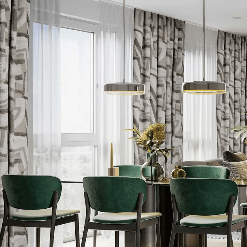 This patterned curtain is made from a polyester fabric, with a heavy and premium feel. For the best folded effect, make sure you order enough curtain to cover twice the length of your window.