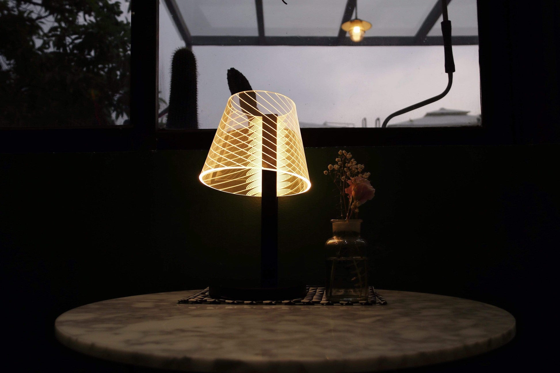 Introducing the Light in Patterns! A revolutionary product designed to be an eye catcher. Made with functionality in mind and design at the forefront. Featuring a glass like "lampshade" embedded with LED lights producing a beautifully lit ambience.