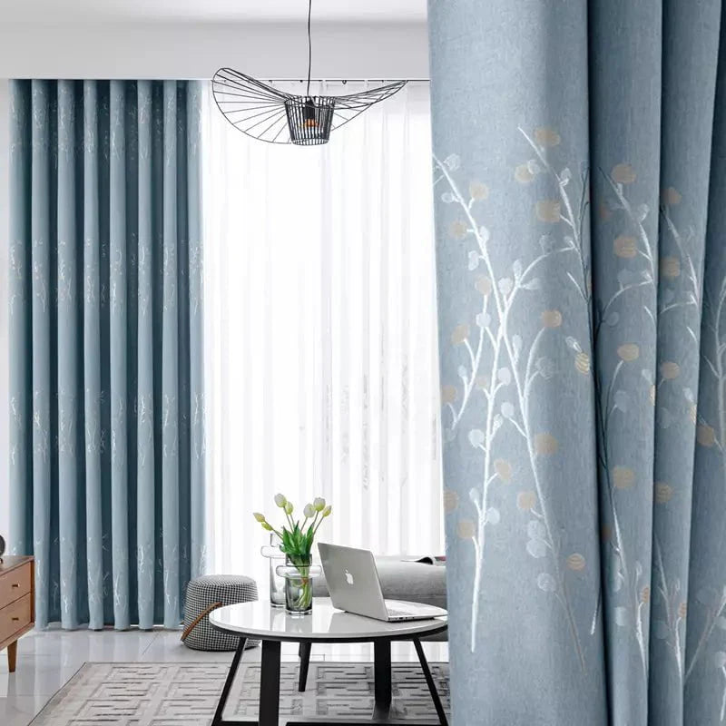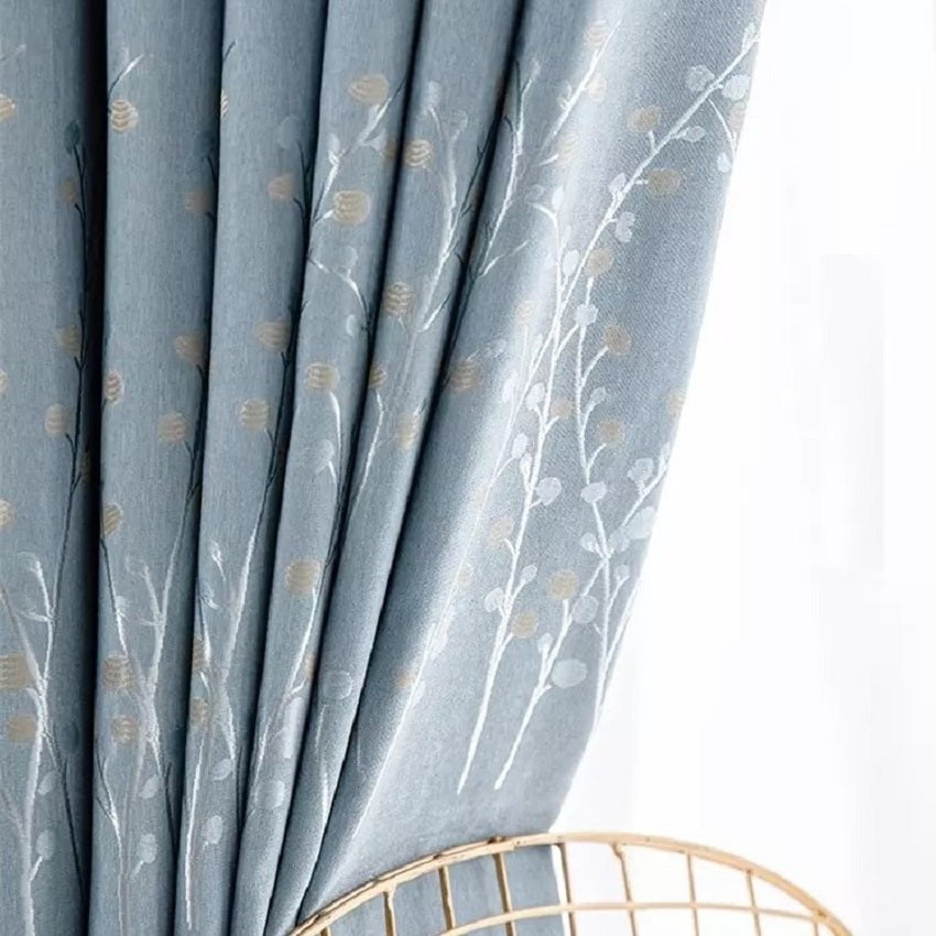 This curtain is made from polyester fabric, with a heavy and premium feel. For the best folded effect, make sure you order enough curtain to cover twice the length of your window.