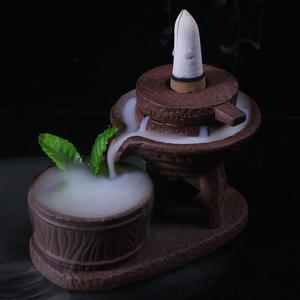 Lit an Incense Cone and place it in its place in the burner (top right). After the cone has been lit well, ash will form, which will push the smoke down towards the hole of the incense cone and through the small hole in the Incense Burner, creating the smoke trail that will be giving the waterfall effect.