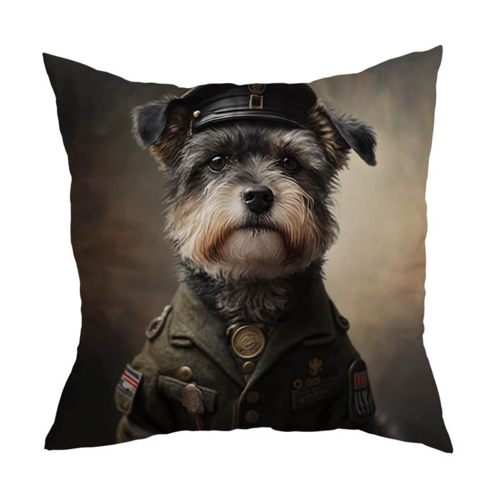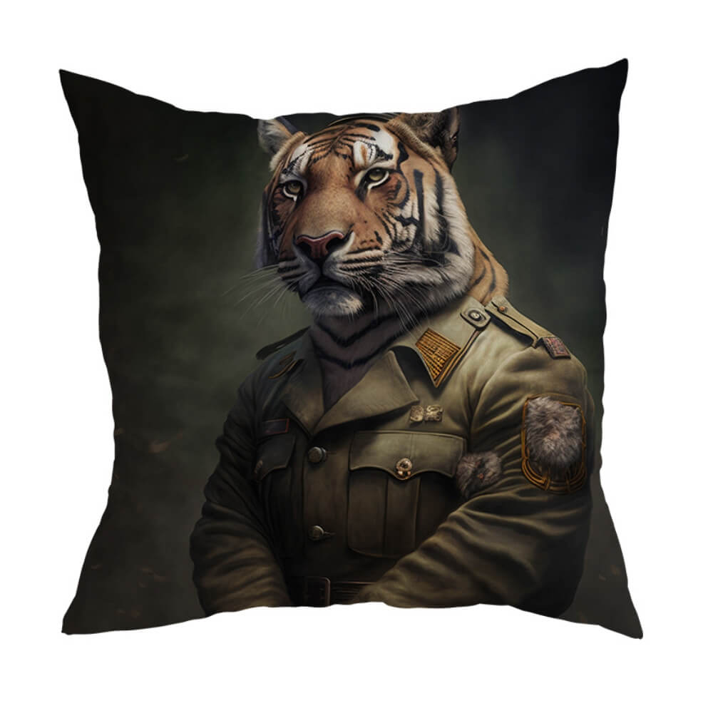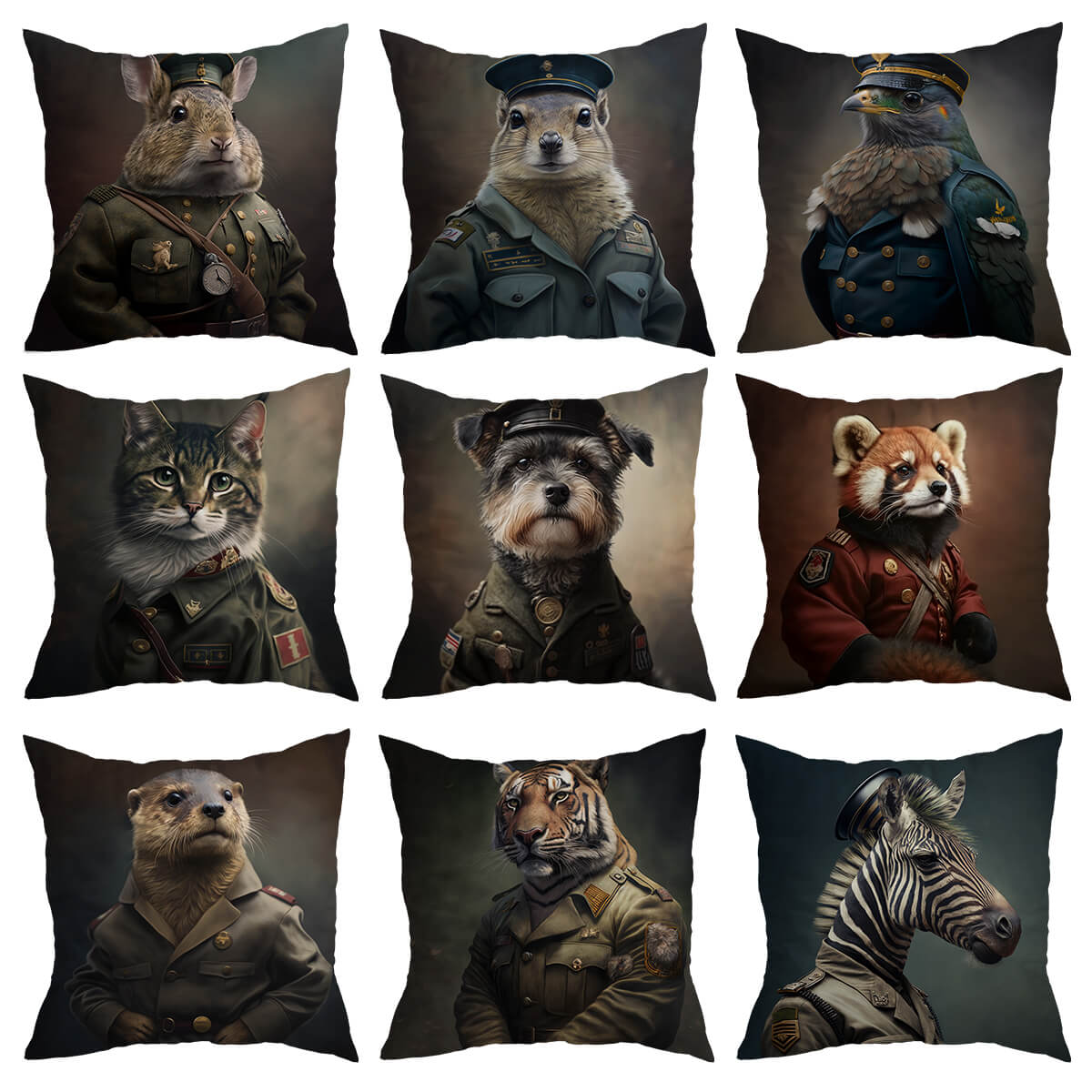 Emblazon your home décor with a unique and stylish symbol of honor and bravery - the Military Animals Cushion Cover! This warrior-inspired design brings color, texture, and character to any space while celebrating our courageous cute animal friends. With an eye-catching pattern featuring a variety of animals, this cover is sure to make an impact in any room. Enjoy the comfort and quality of luxurious fabric that is designed to last.