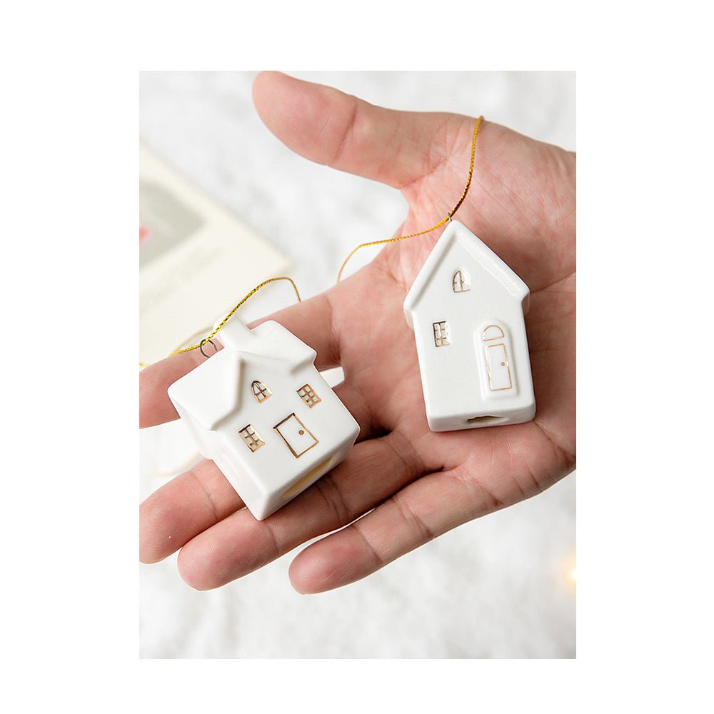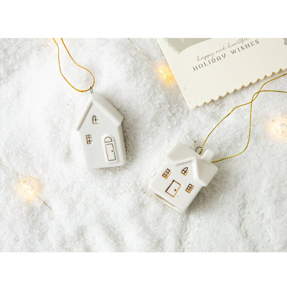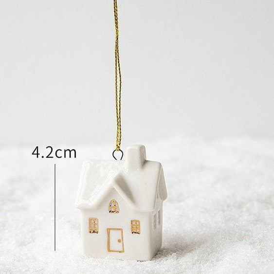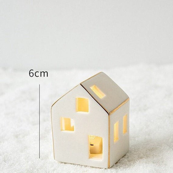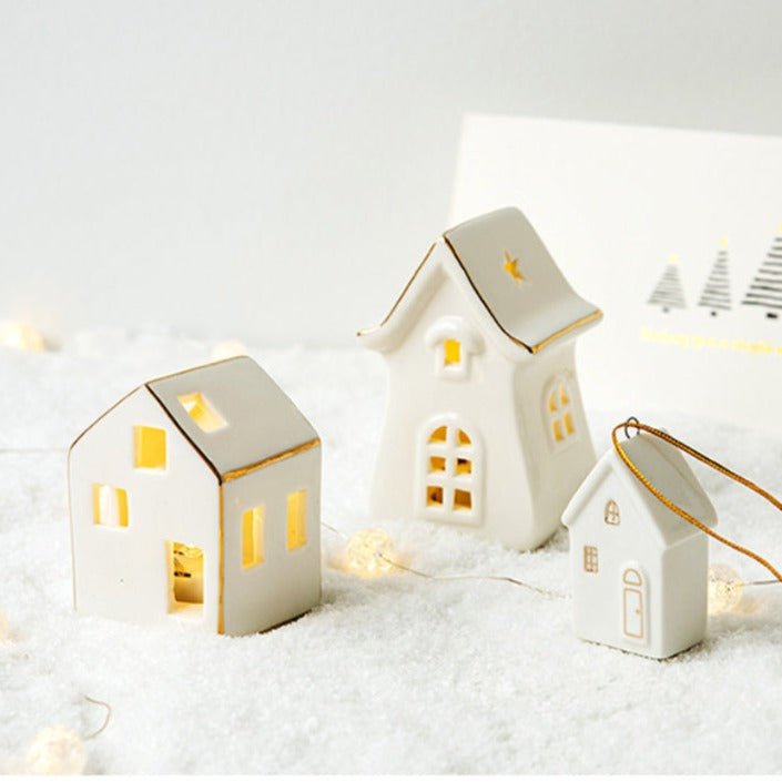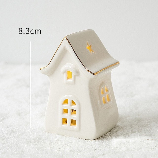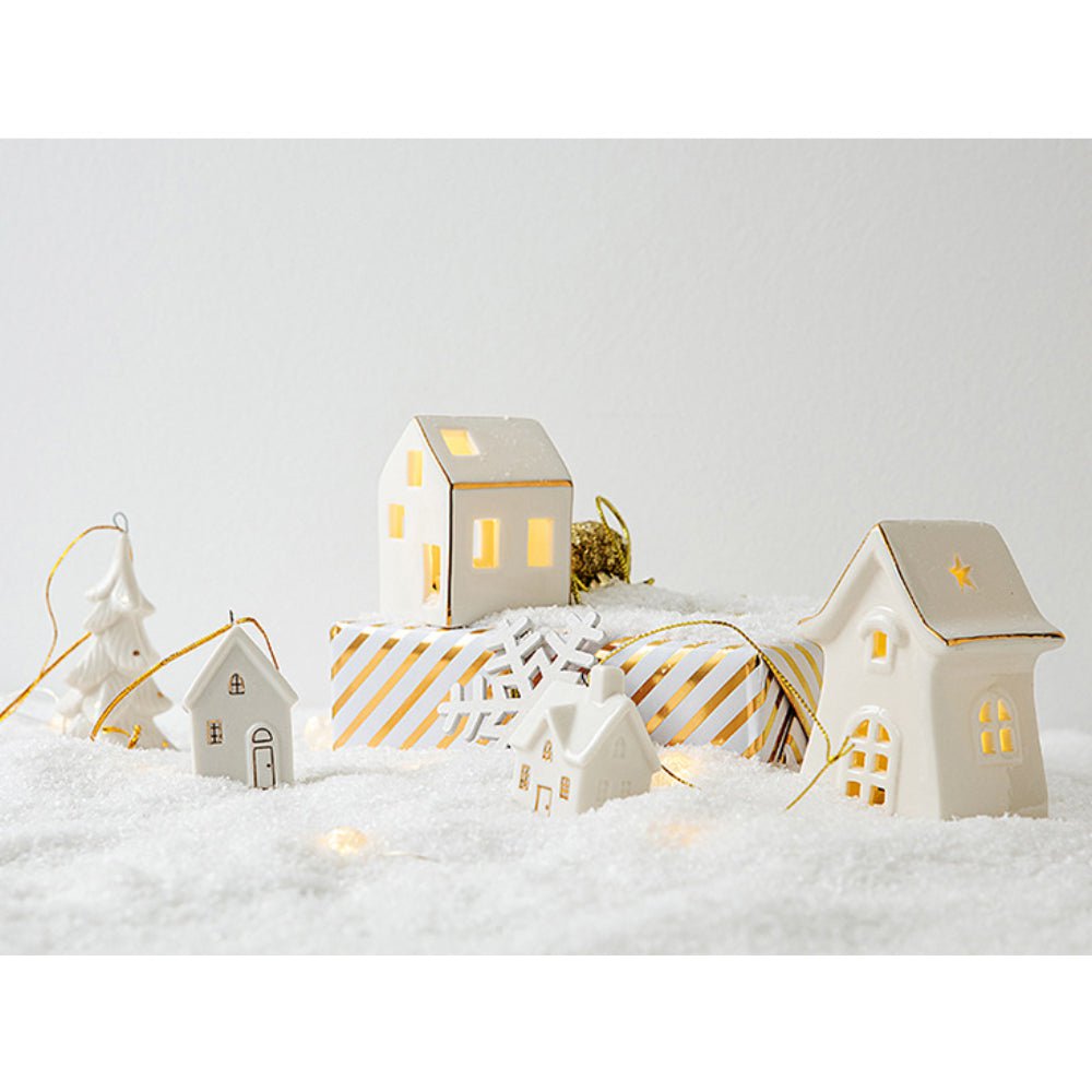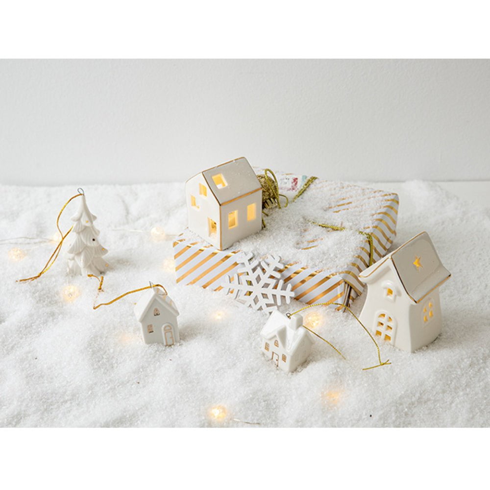 Give your home a touch of white Christmas with our set of small-scale lovely set of ceramic white houses with additional ornaments. A must-have for this Christmas season!