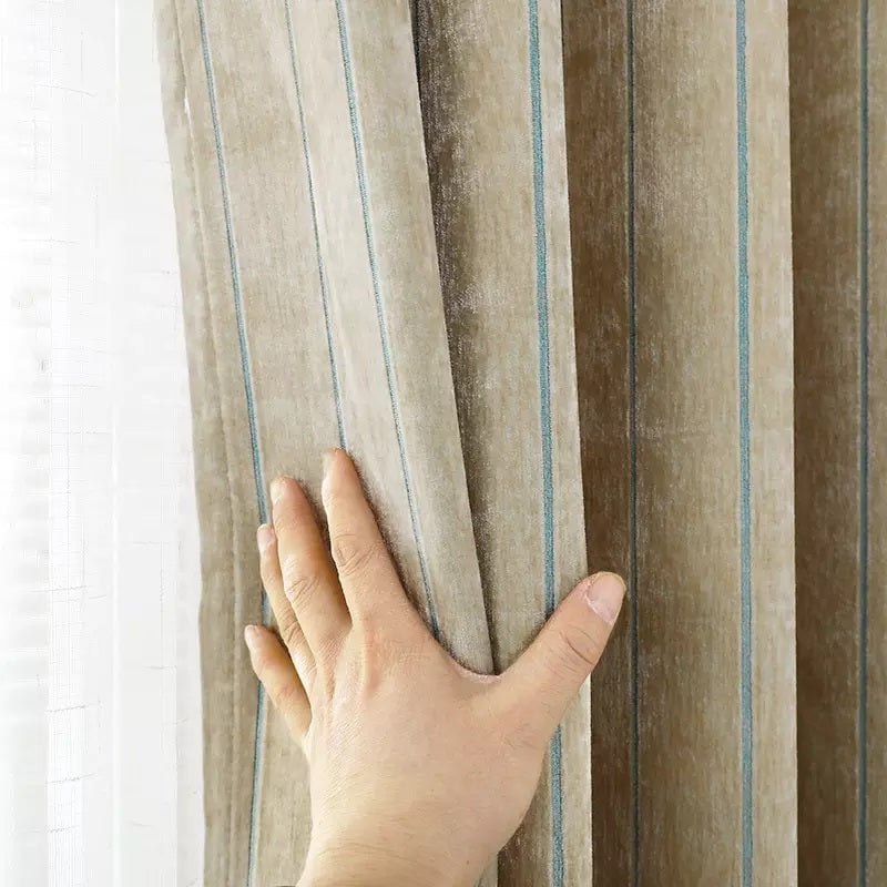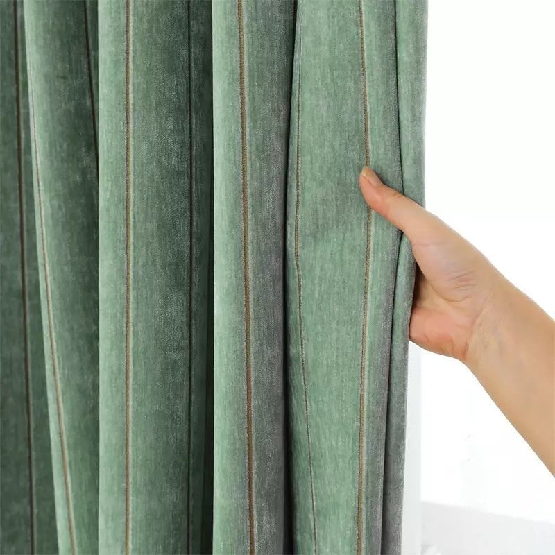 This curtain is made from a polyester blend, with a heavy and premium feel. For the best folded effect, make sure you order enough curtain to cover twice the length of your window.