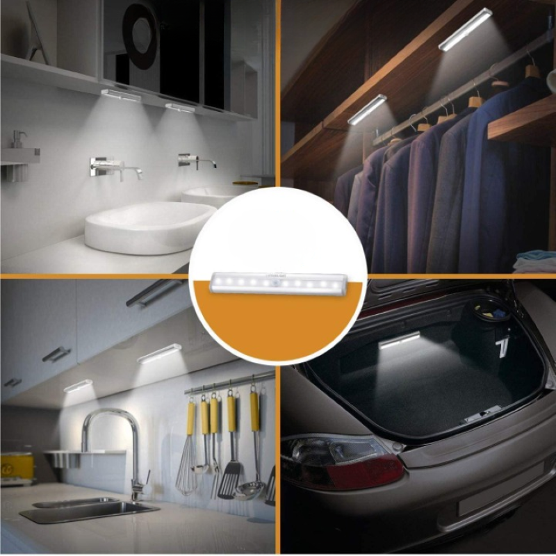 - MOTION SENSOR LED LIGHT BAR: Upgrade your home ambiance and add a touch of elegance and technology with Our Motion Sensor LED Lights. Our closet light features Passive Infrared Technology (PIR), which detects human motion to turn it on in the dark. The wardrobe-led light comes with 10 high-quality LED lights to provide bright lighting in a dark environment.