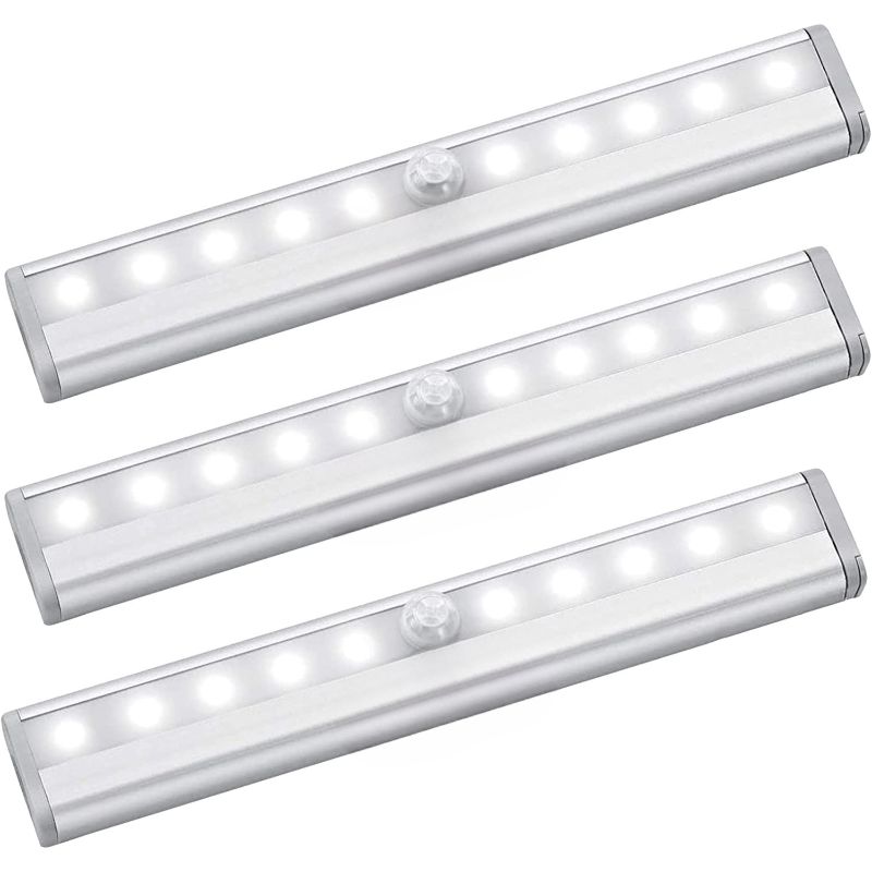 Motion Sensor LED Lights, 10 LED Battery Operated Motion Light, Stick-On Anywhere Magnetic Night Light Bar for Under Cabinet, Closet, Hallway, Stairway, Wardrobe, Kitchen, Vanity, 3 Pack