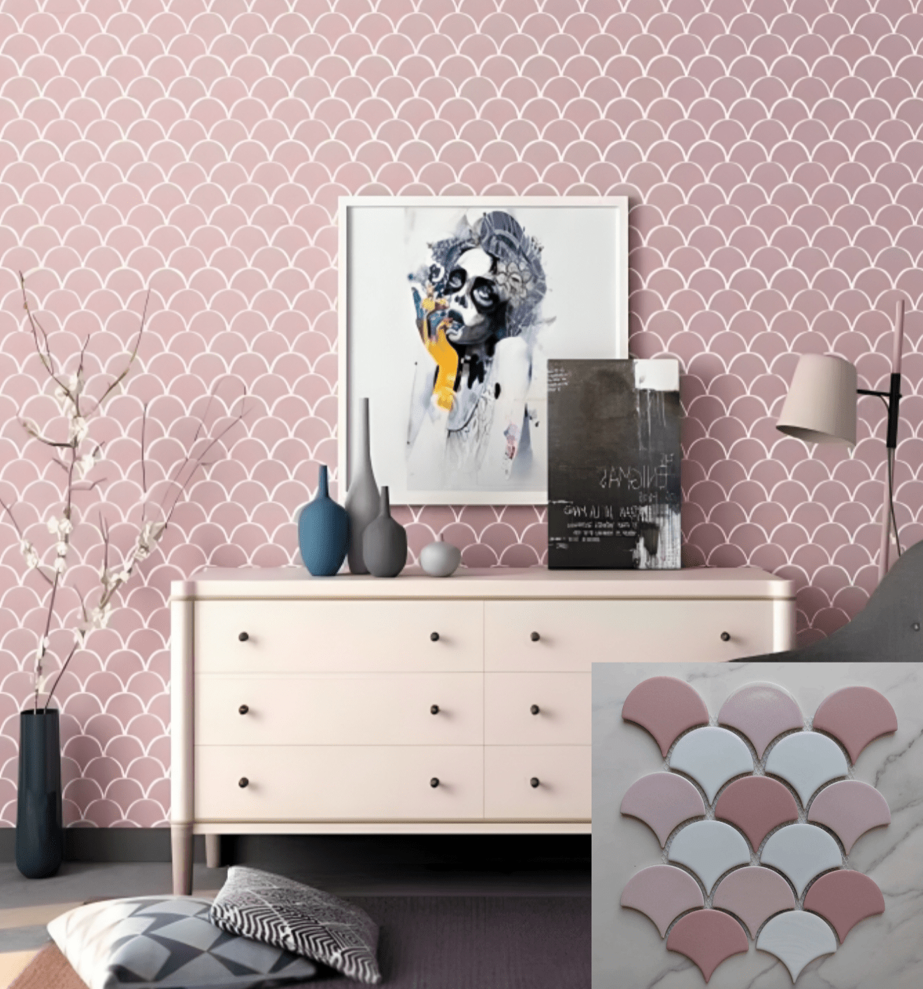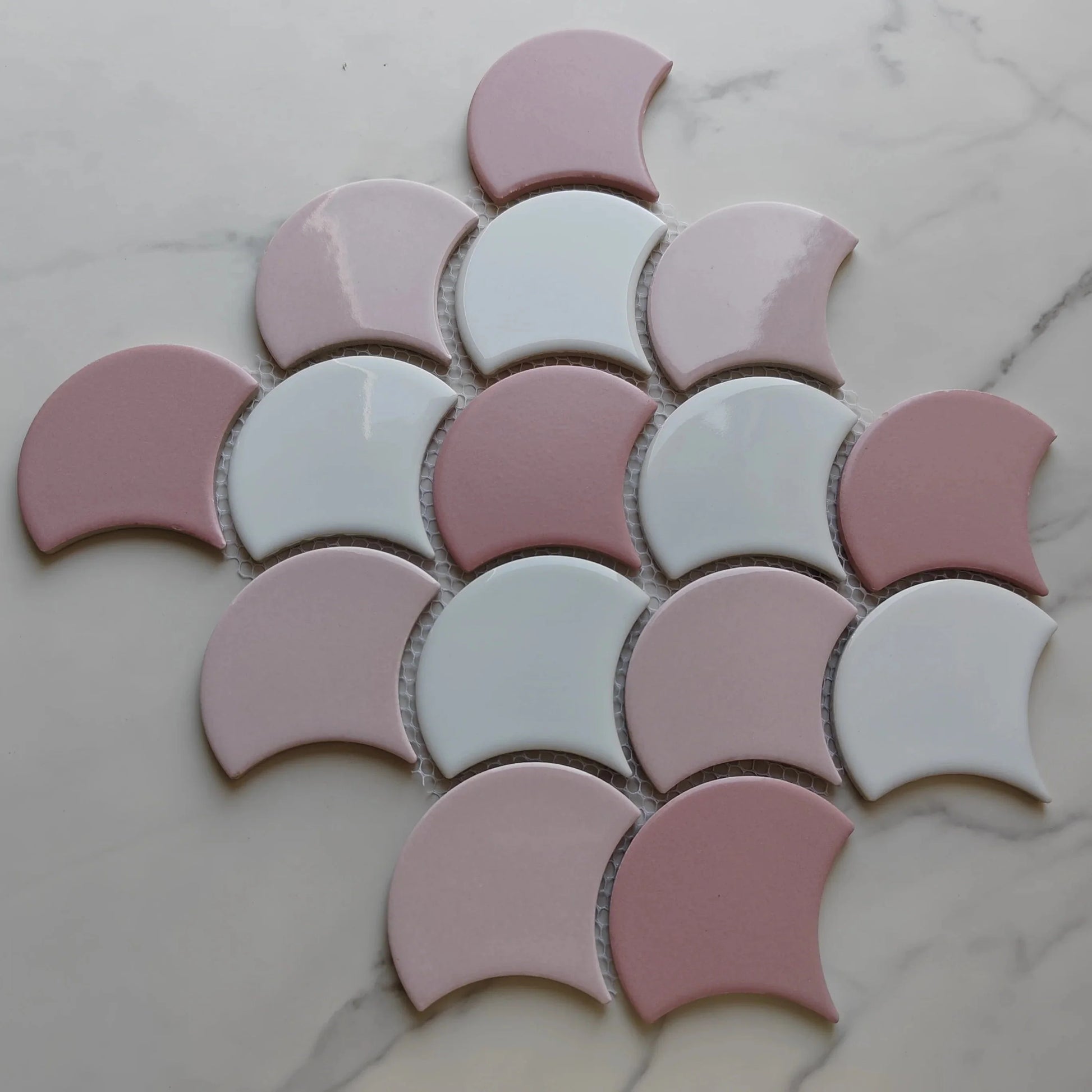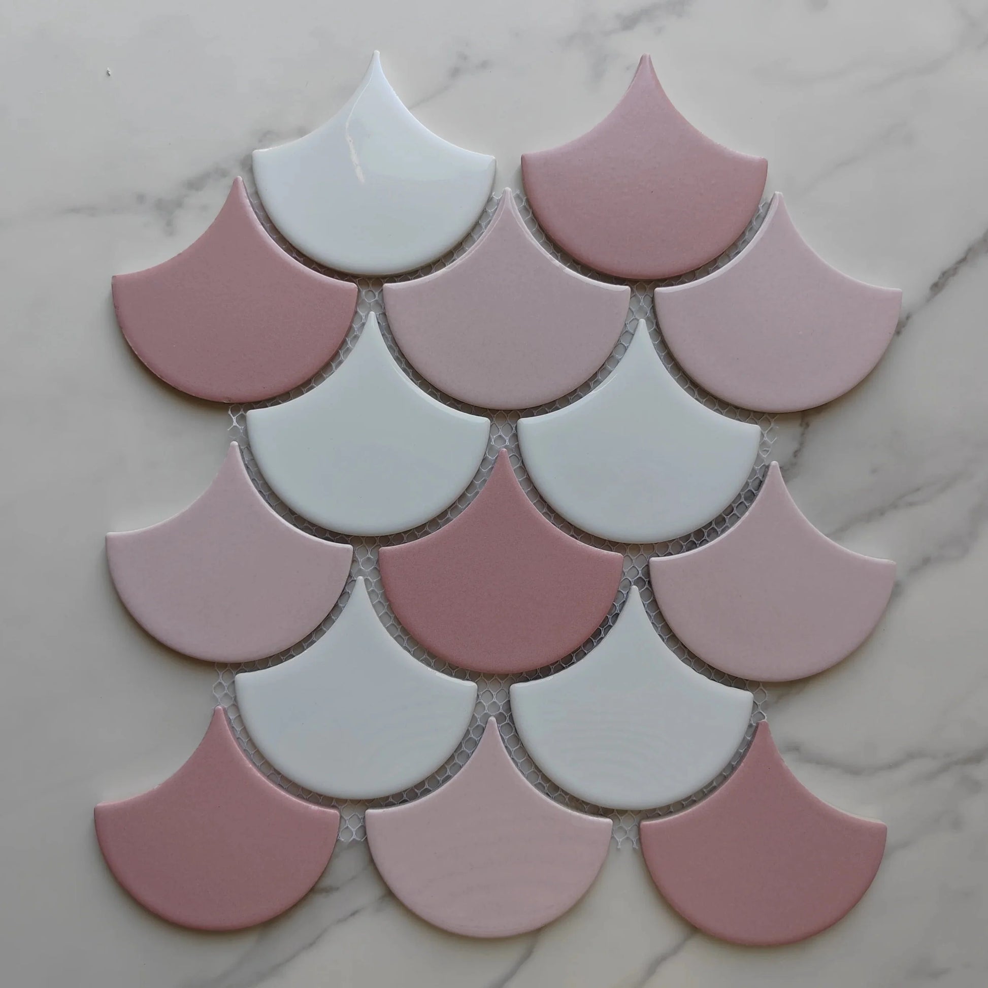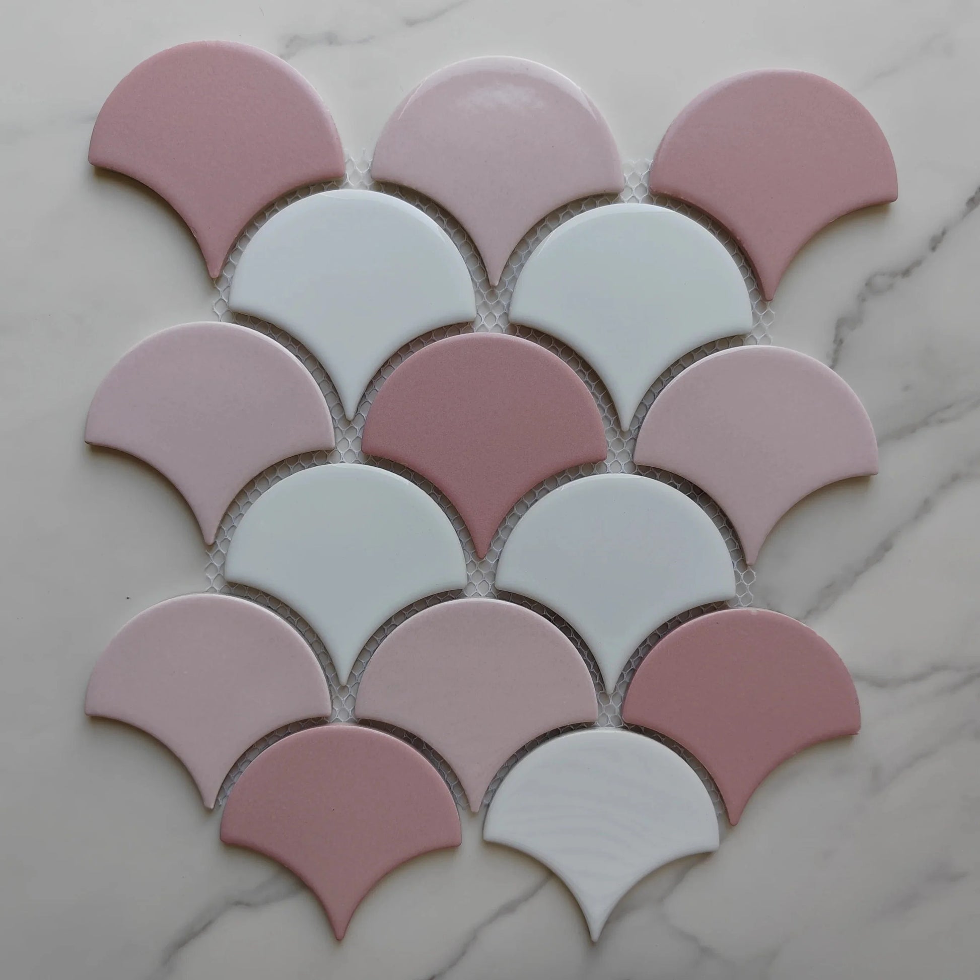 Multi Pink Fan Shaped Mosaic Tile