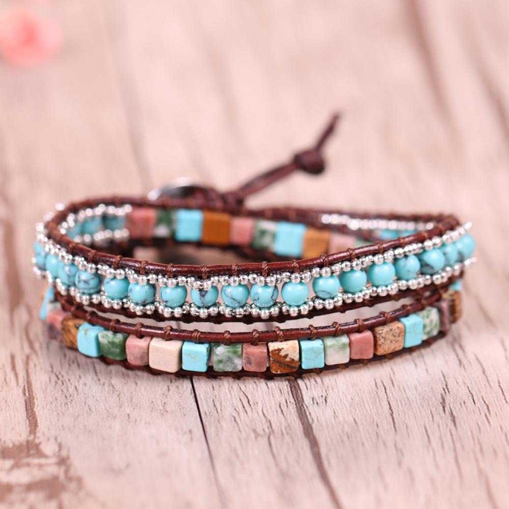 Natural Stone Turquoises Handmade Yoga Wrap Bracelet