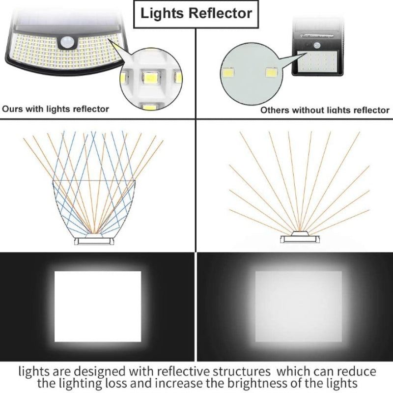 New Solar Lights 120 LED With Lights Reflector, 270° Wide Angle, IP65 Waterproof, Easy-to-Install Security Lights for Front Door, Yard, Garage, Deck