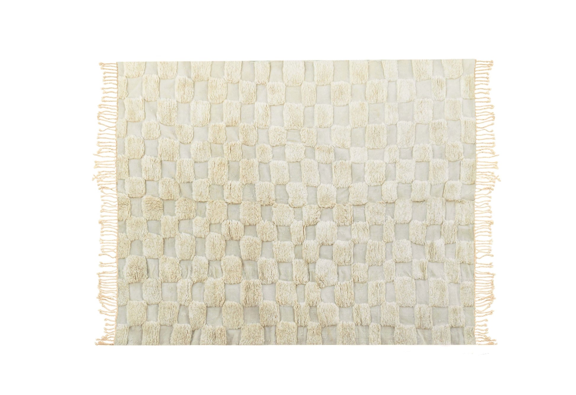 Traditionally Beni Ourain rugs were used as bed-coverings by the Berber Tribespeople from the Atlas Mountains in Morocco. These villages are renowned for their world class rugs weavers. The sheep that live in these mountains have developed exceptionally soft wool.