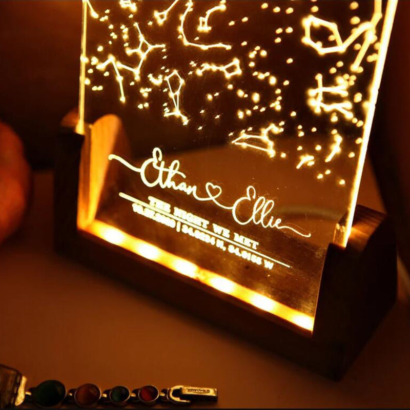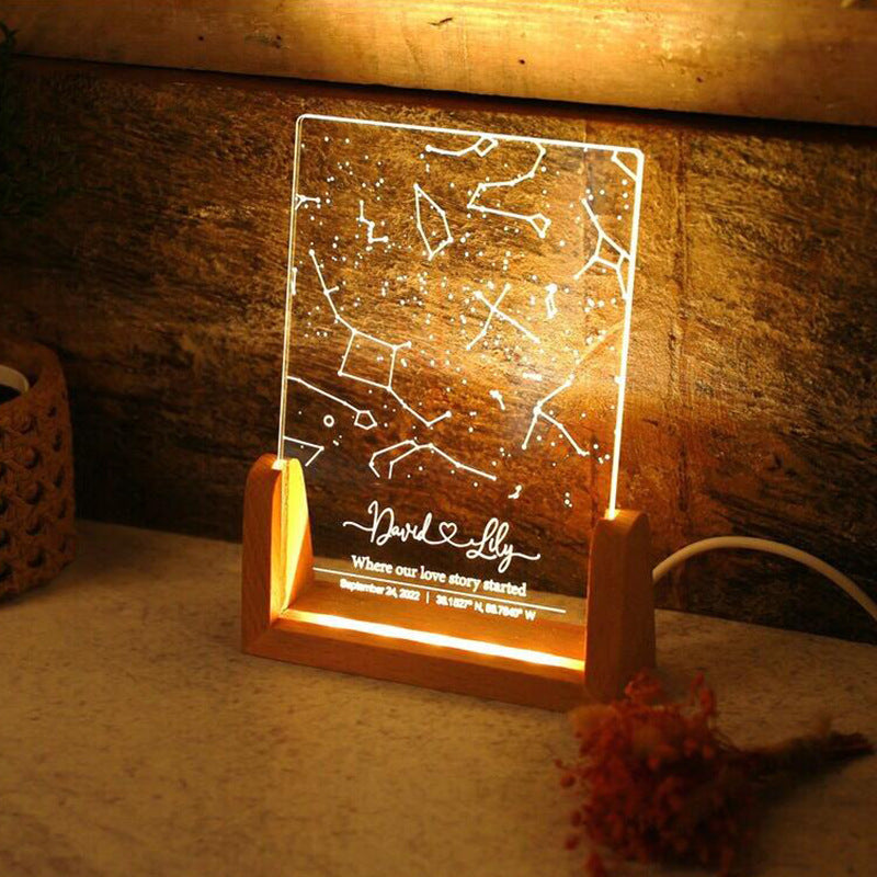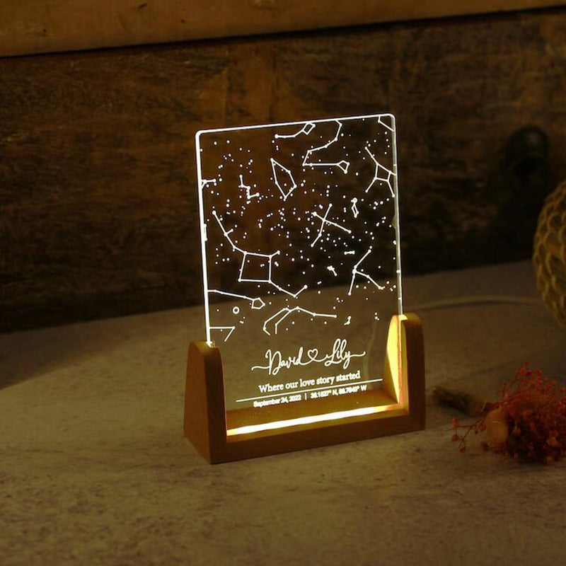Personalized Star Map Night Light Engraved Name Birthday Photo Frame Wooden Base