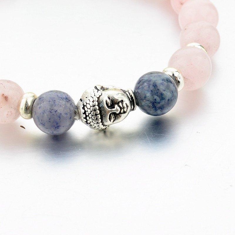 PINK NATURAL STONE BEADS BUDDHA BRACELET