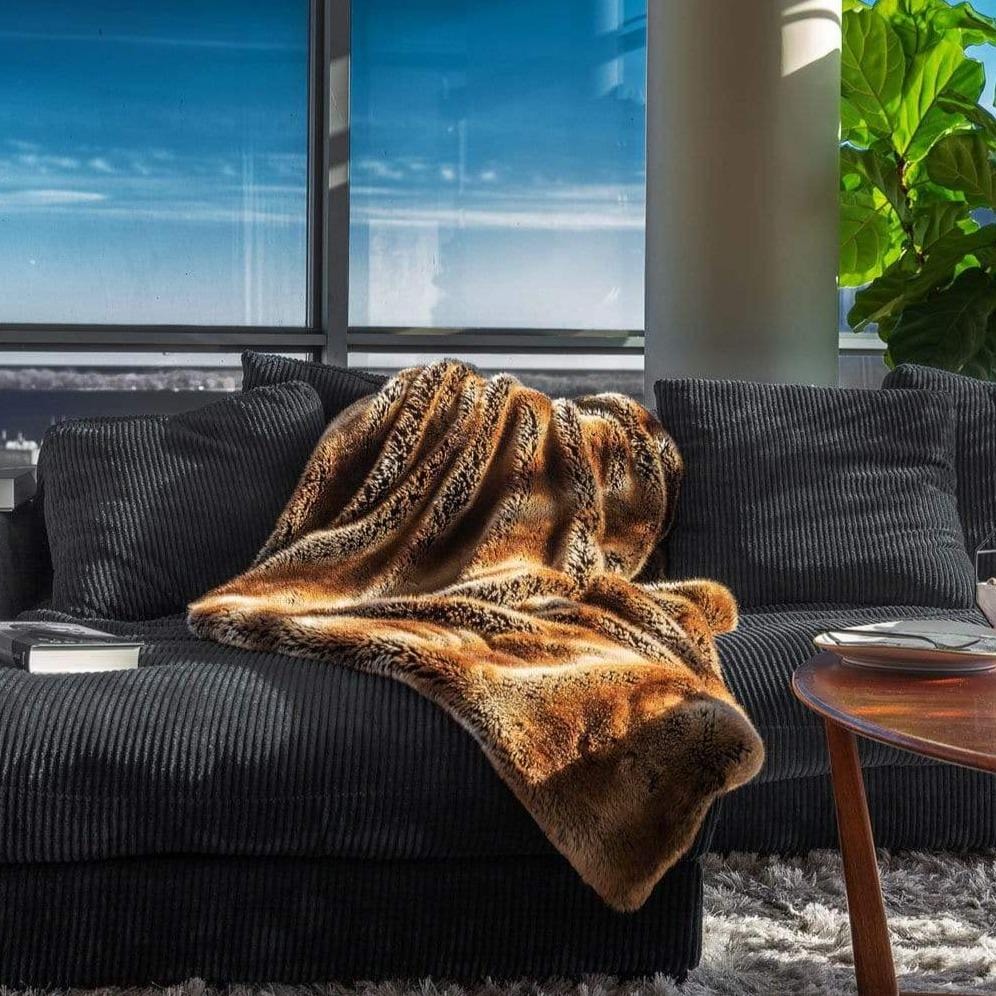 Platinum Frost Fox Faux-Fur Blanket Throw