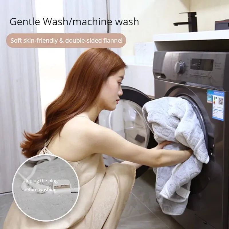 It boasts a fast-heating design for immediate warmth in cold weather, a convenient controller with various heating settings, an auto shut-off function for added comfort, an over-heat protection feature, a portable design and a long power cord for use anywhere. it is made of high-quality fabric that is soft and comfortable to the touch. It is also easy to maintain and clean as it is machine washable.