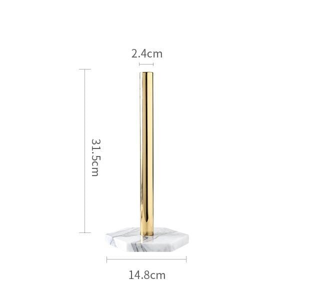 The Precious Paper Towel Holder, a glossy golden rod sitting on top of a marble stand. This is sure to be your next favourite product!