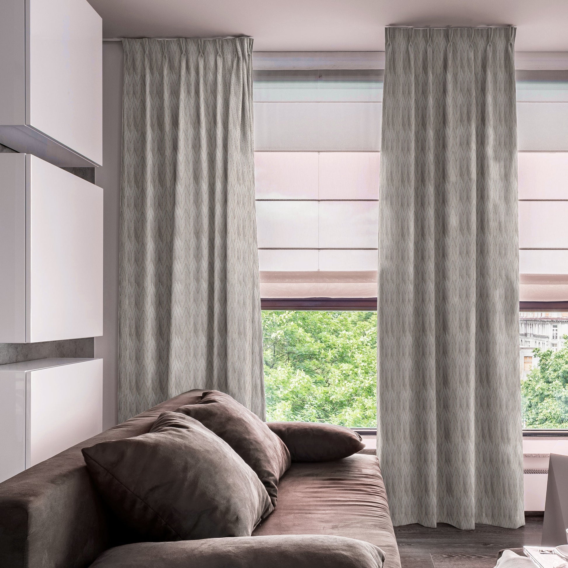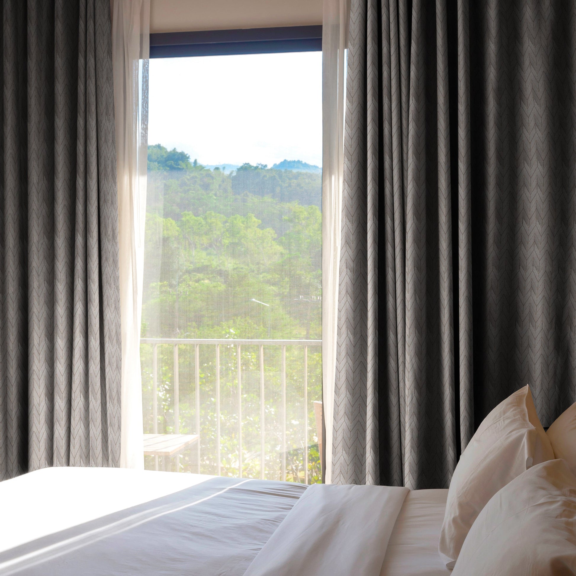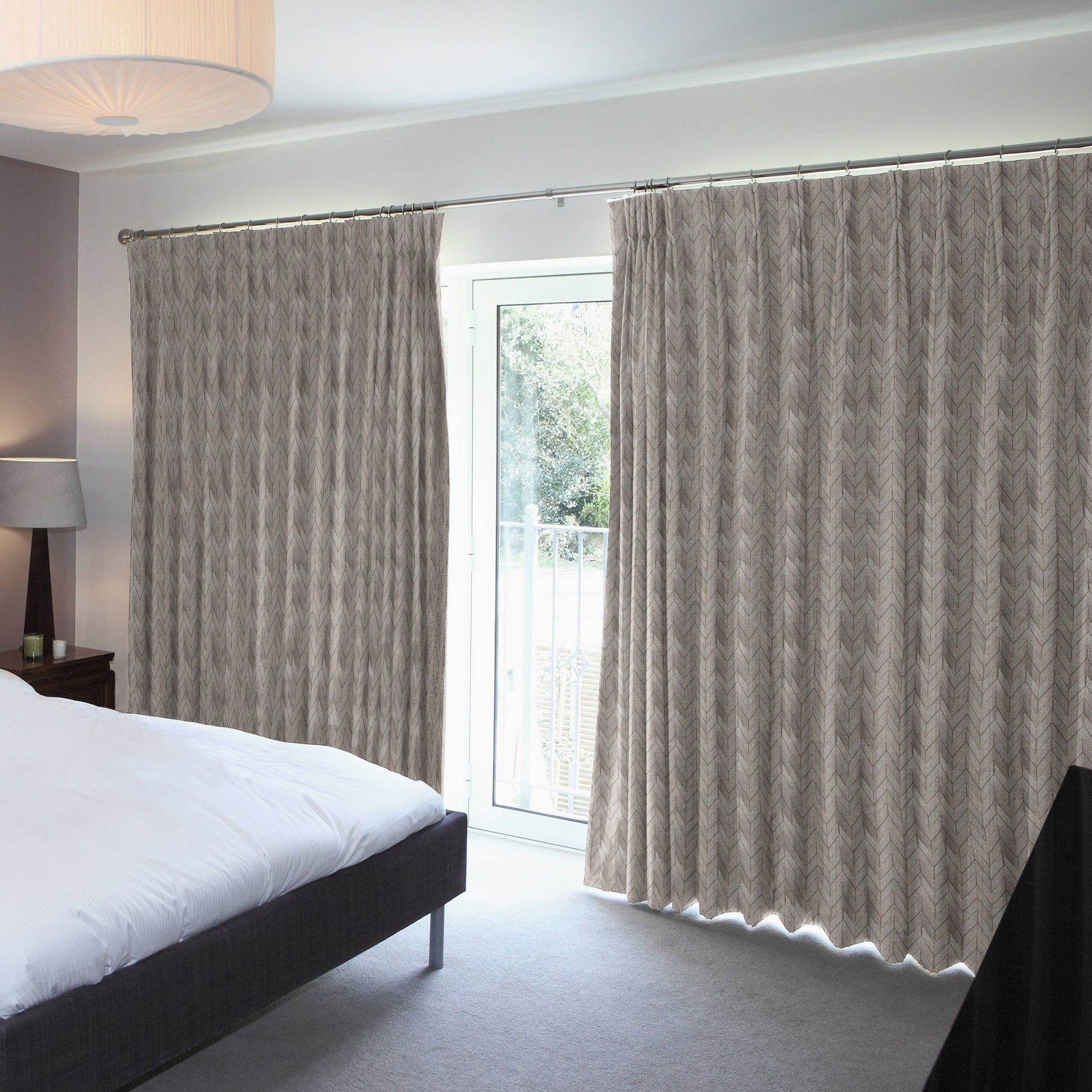 The Royale Chevron Blackout Drapes is crafted from high quality polyester fabric with a heavy and premium feel. For the best folded effect, make sure you order enough curtain to cover twice the length of your window.
