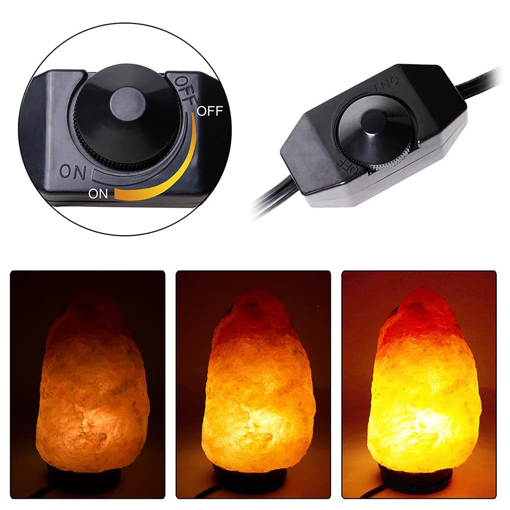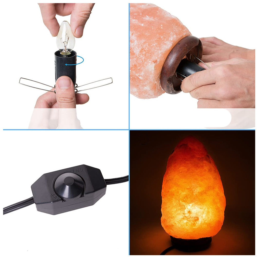 The salt lamp cord with a metal clip fits up a range of the bottom hole's diameter of over 1.18 inches and height of over 3.54 inches which apply to various types of salt lamps. The dimmer knob helps you adjust the ambiance with a simple turn of the knob.