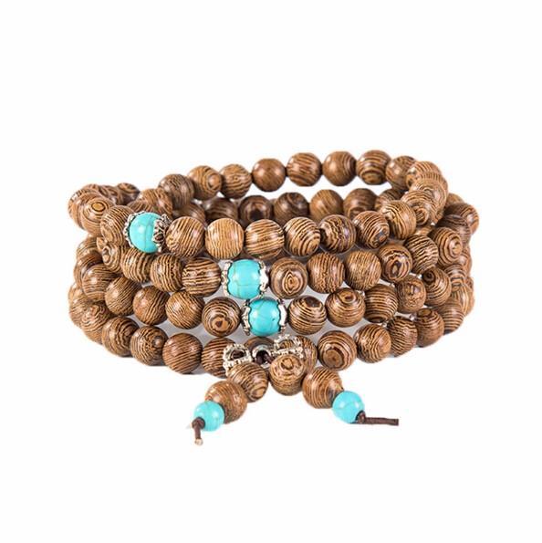 SANDALWOOD AND TURQUOISE MALA BRACELET