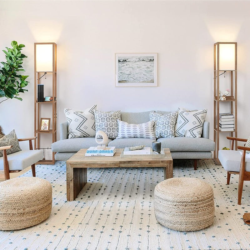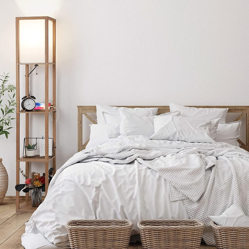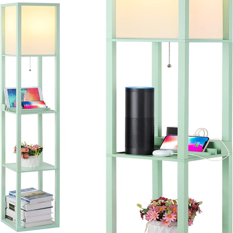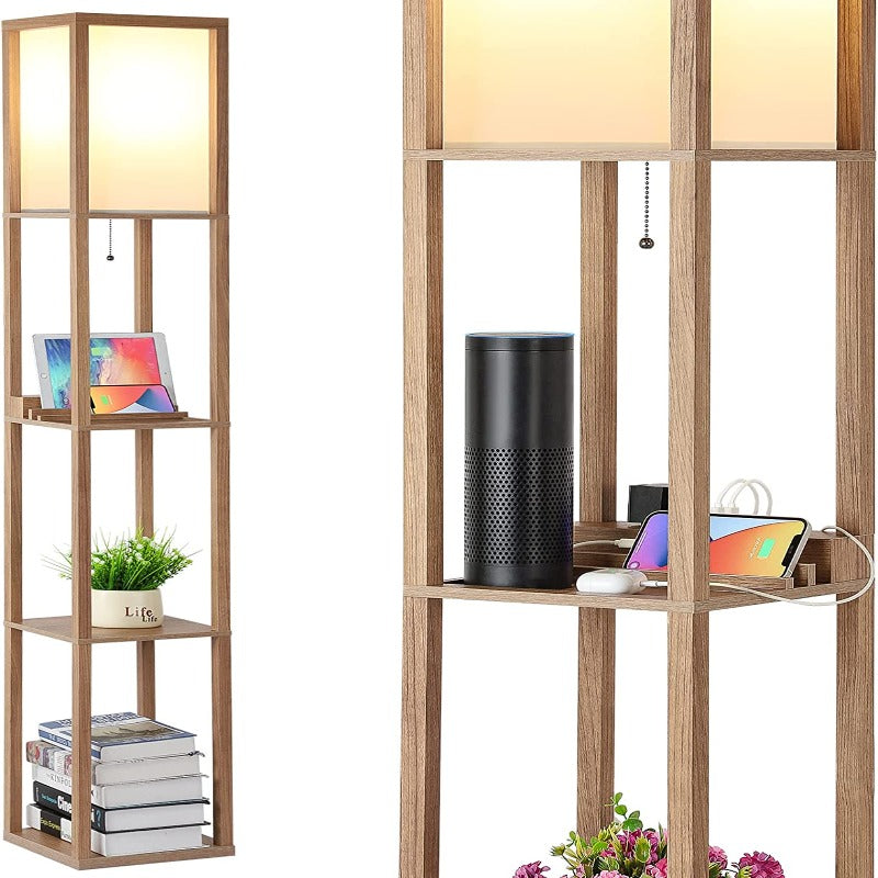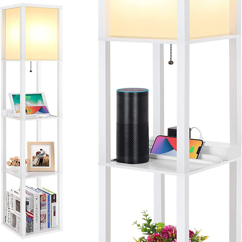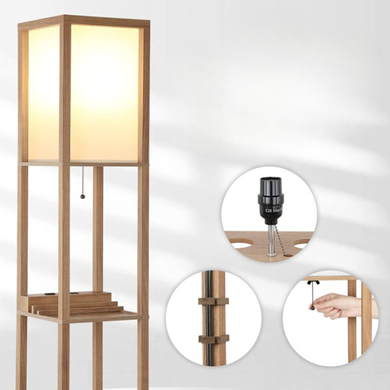 - The 3-in-1 Cuboid Shelf Floor Lamp: With a TC lamp shade and a wood grain appearance, the 3-in-1 3-tiered cuboid 63inch height shelf floor lamp has a simple and elegant appearance which is suitable for any decoration style such as modern, contemporary, rural style and so on. Pulling the chain on/off easily to control the light on and off. Customized clips can easily secure the wire to the pole of the lamp to reduce the redundancy of the wire and increase the beauty.