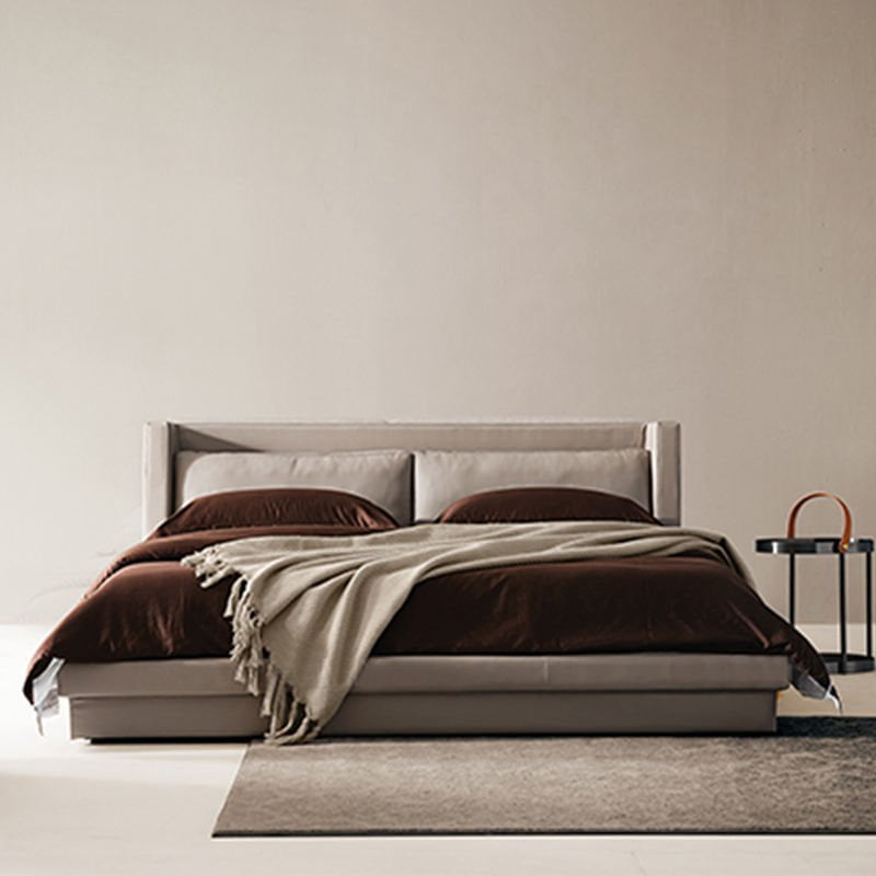 A beautiful Cream leather upholstered bed, made from a solid wood frame. The bed is cushioned with premium foam.