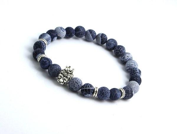 SILVER PLATED LION'S HEAD AGATE BEADS BRACELET