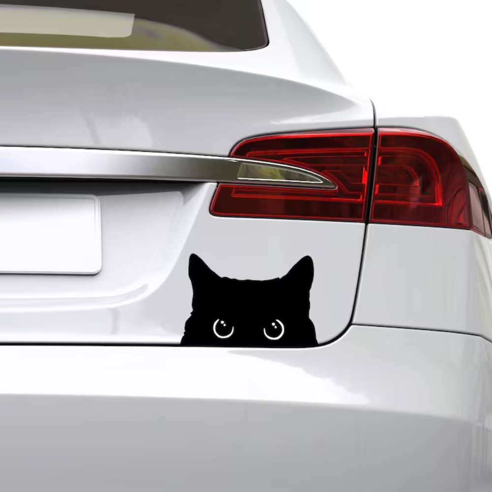- The sticker features a mischievous cat, elegantly crafted to add a playful touch to any surface while bringing a smile to your face.
