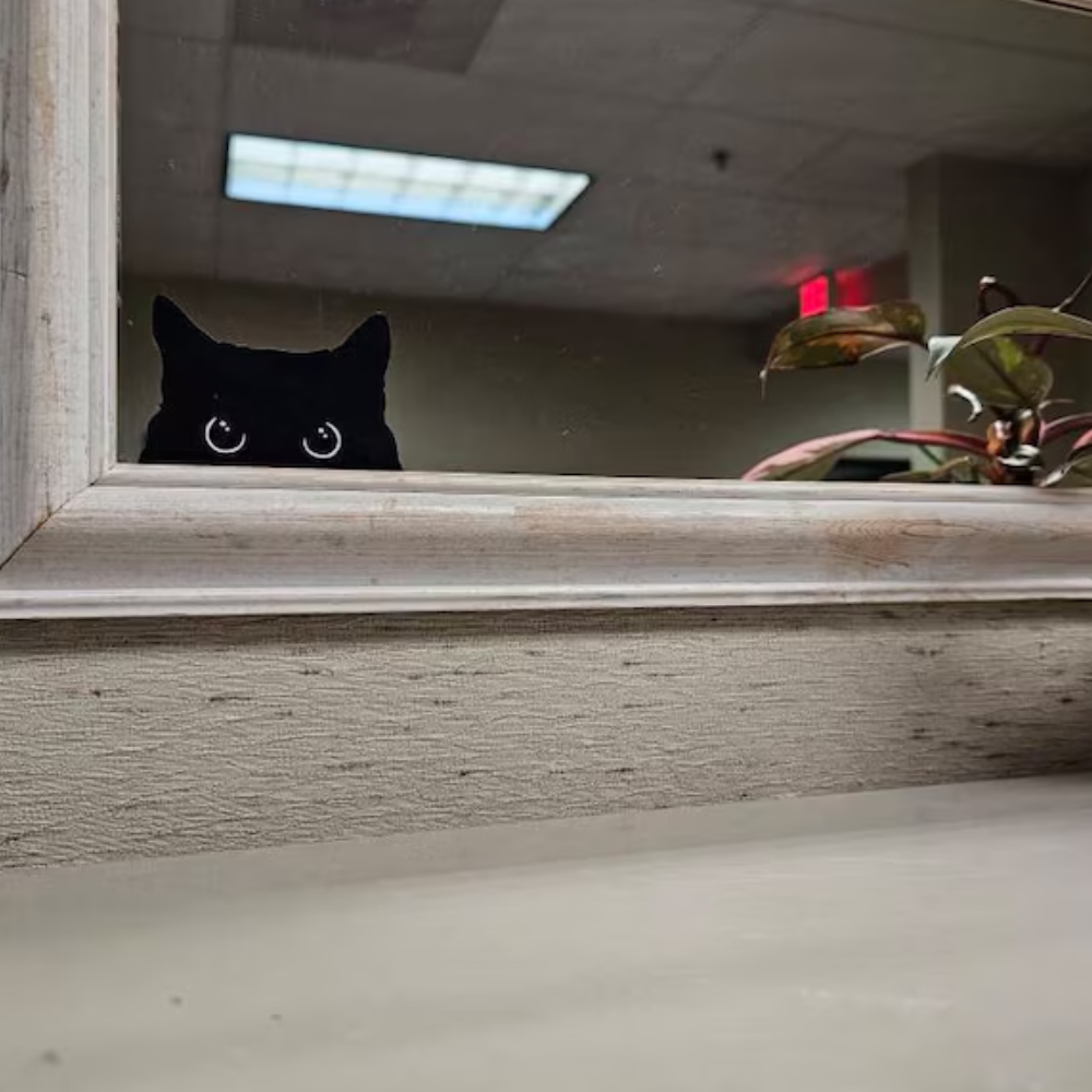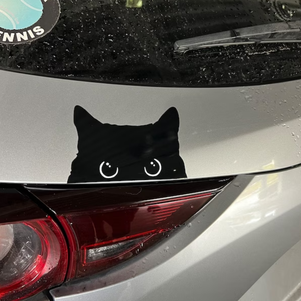 Add a touch of playful charm to your belongings with the Sneaky Cat Sticker. This delightful decal features an adorable peeking cat design, perfect for your car, laptop, phone, or window.