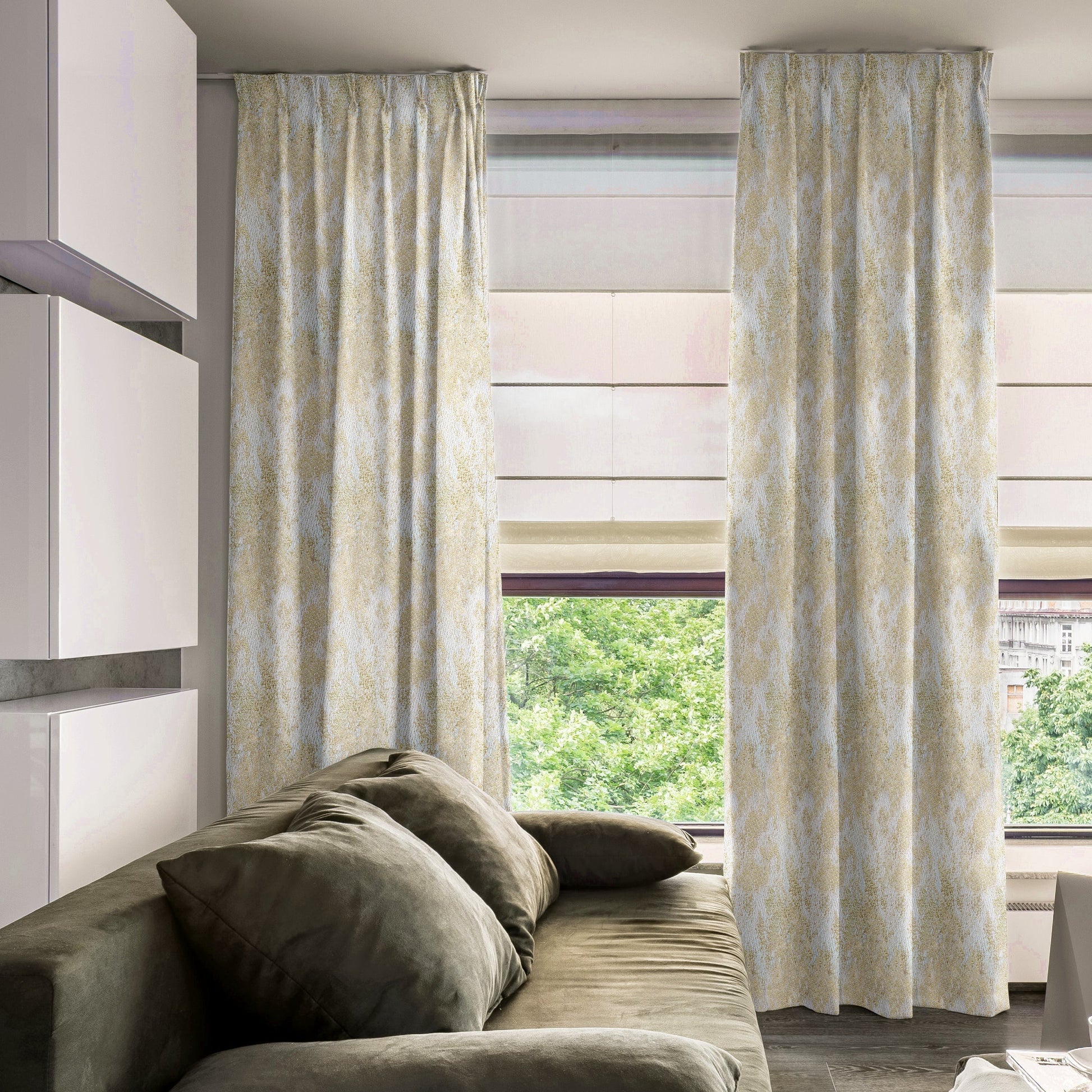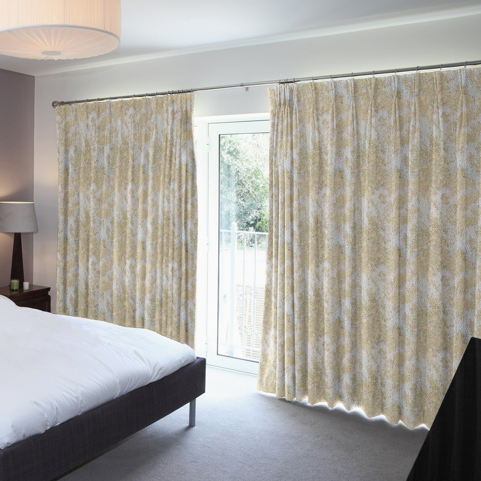 The Specks of Gold Blackout Drapes is crafted from high quality polyester fabric with a heavy and premium feel. For the best folded effect, make sure you order enough curtain to cover twice the length of your window.