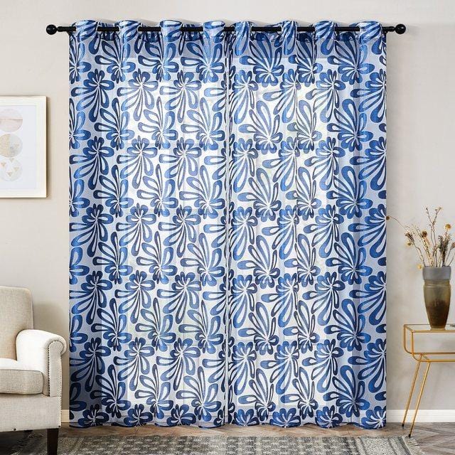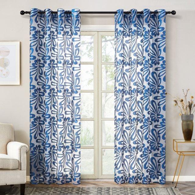 Splash Ring Blue Sheer Curtain